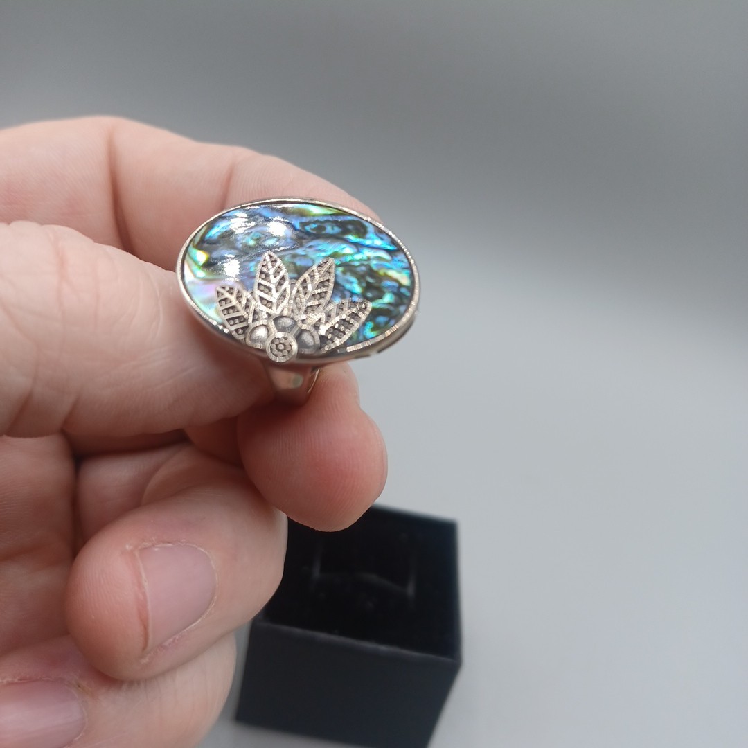 как выглядит Abalone Oval Shell Sterling Silver Ring Size 5 BBJ Brand Very Nice Preowned фото