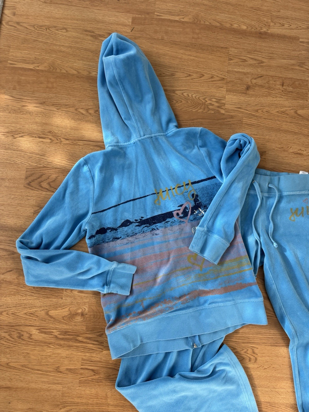 Vintage Y2K Juicy Couture Velour Baby Blue Tracksuit S / M Sunset Logo