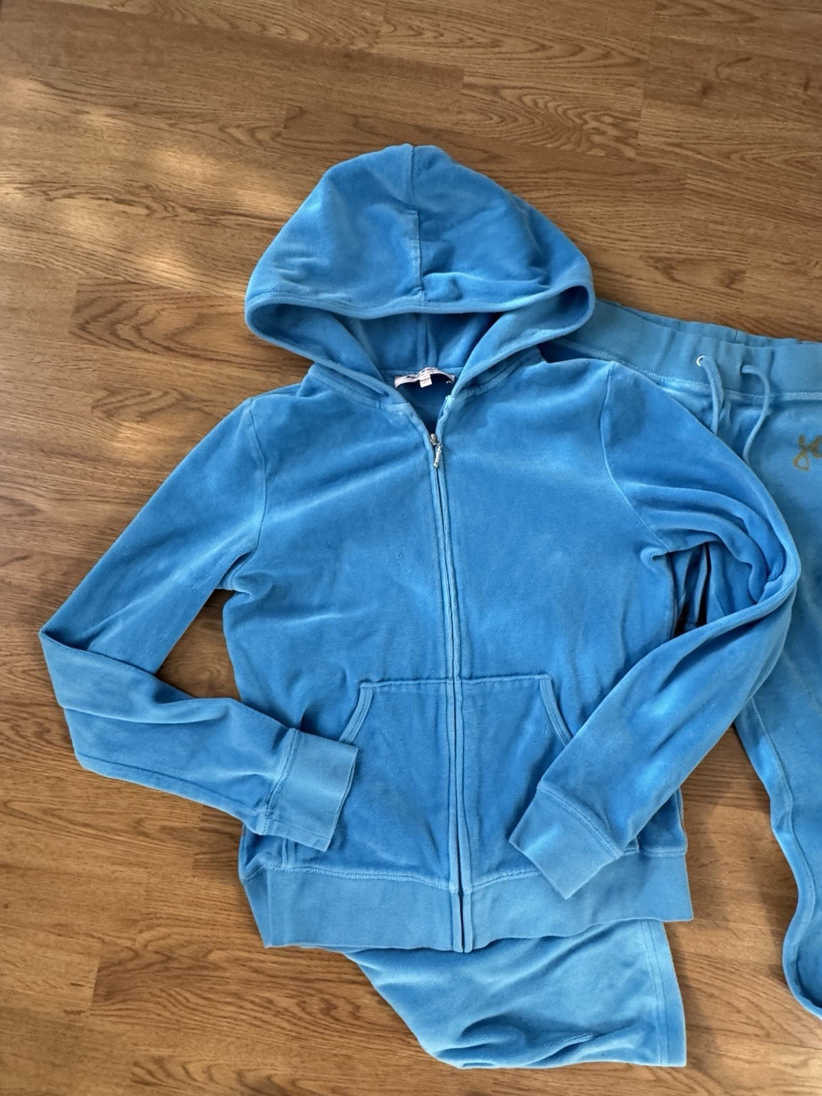 как выглядит Vintage Y2K Juicy Couture Velour Baby Blue Tracksuit S / M Sunset Logo фото