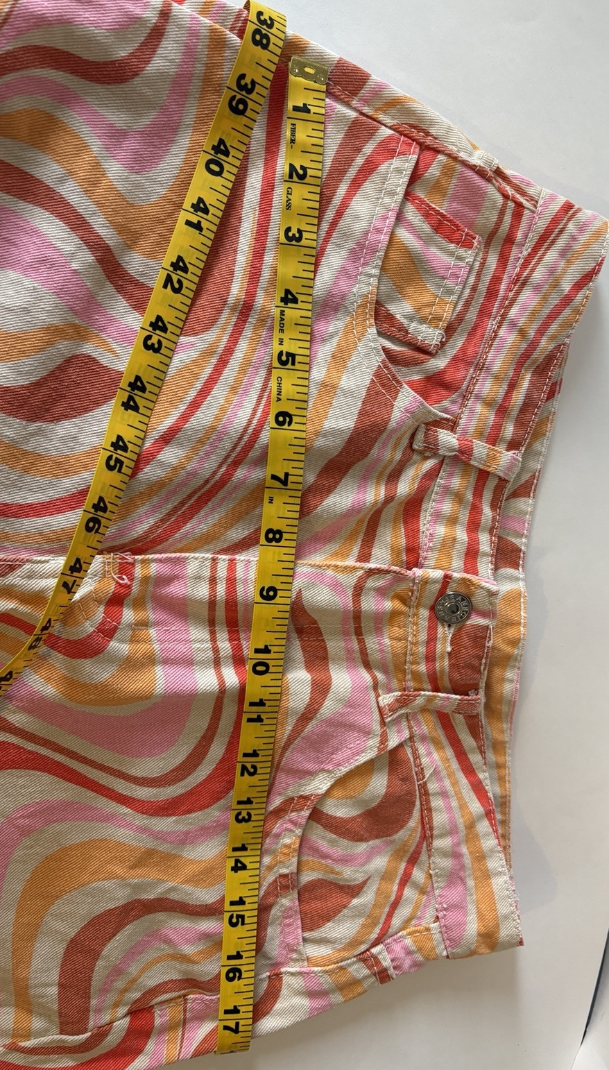 60s/70s Look not Vtg psychedelic flare pants orange/pink/cream abstract pattern