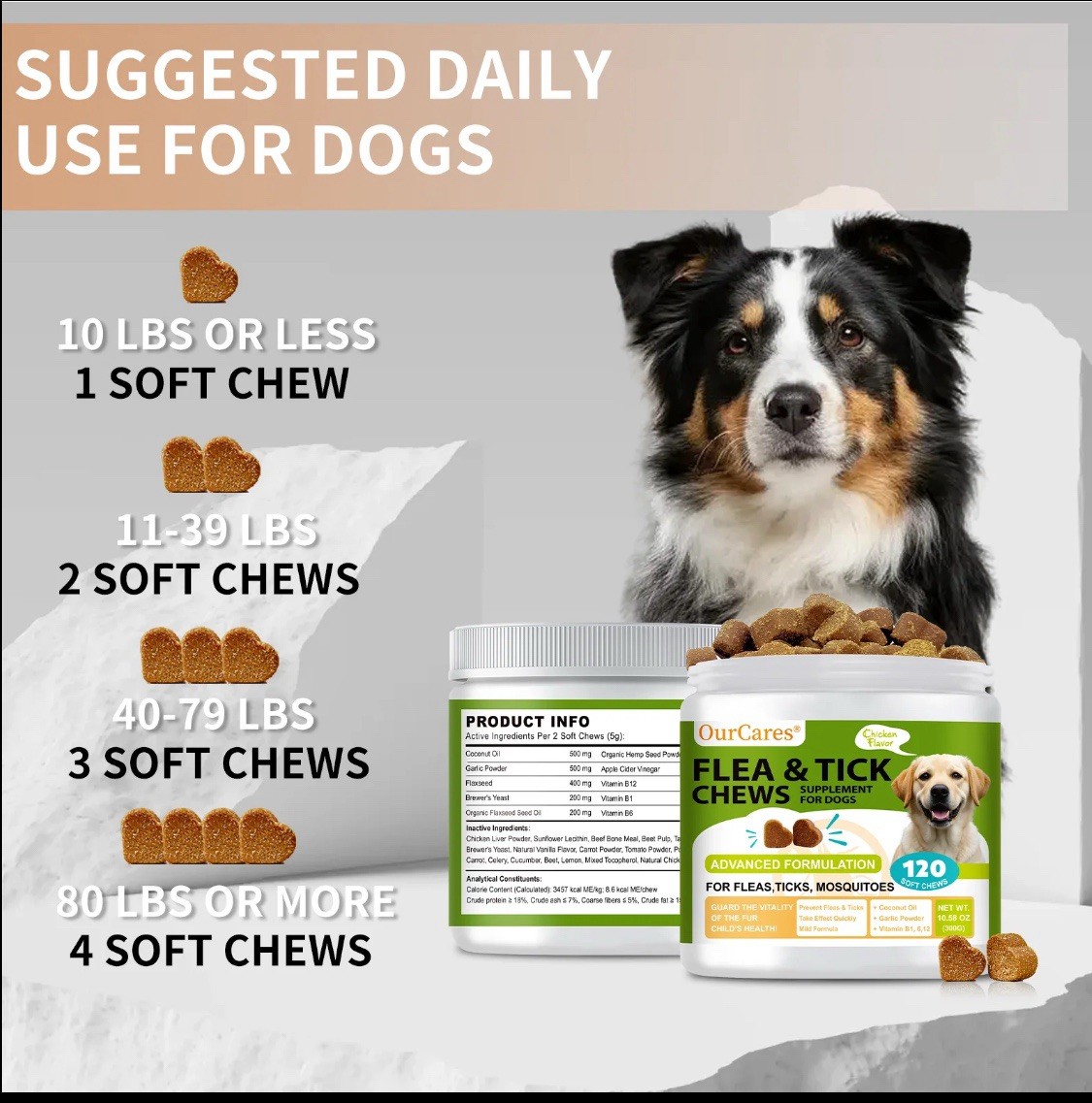 Natural Flea Tick Dog Chews Chicken Flavor, Fast-Acting, Long-Lasting, Healt