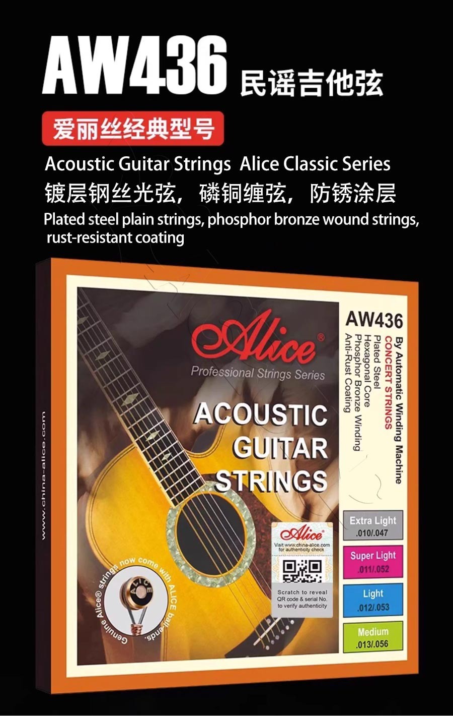 Alice AW436 Phosphor Bronze Acoustic Guitar Strings 6-Piece Full Set Accessories