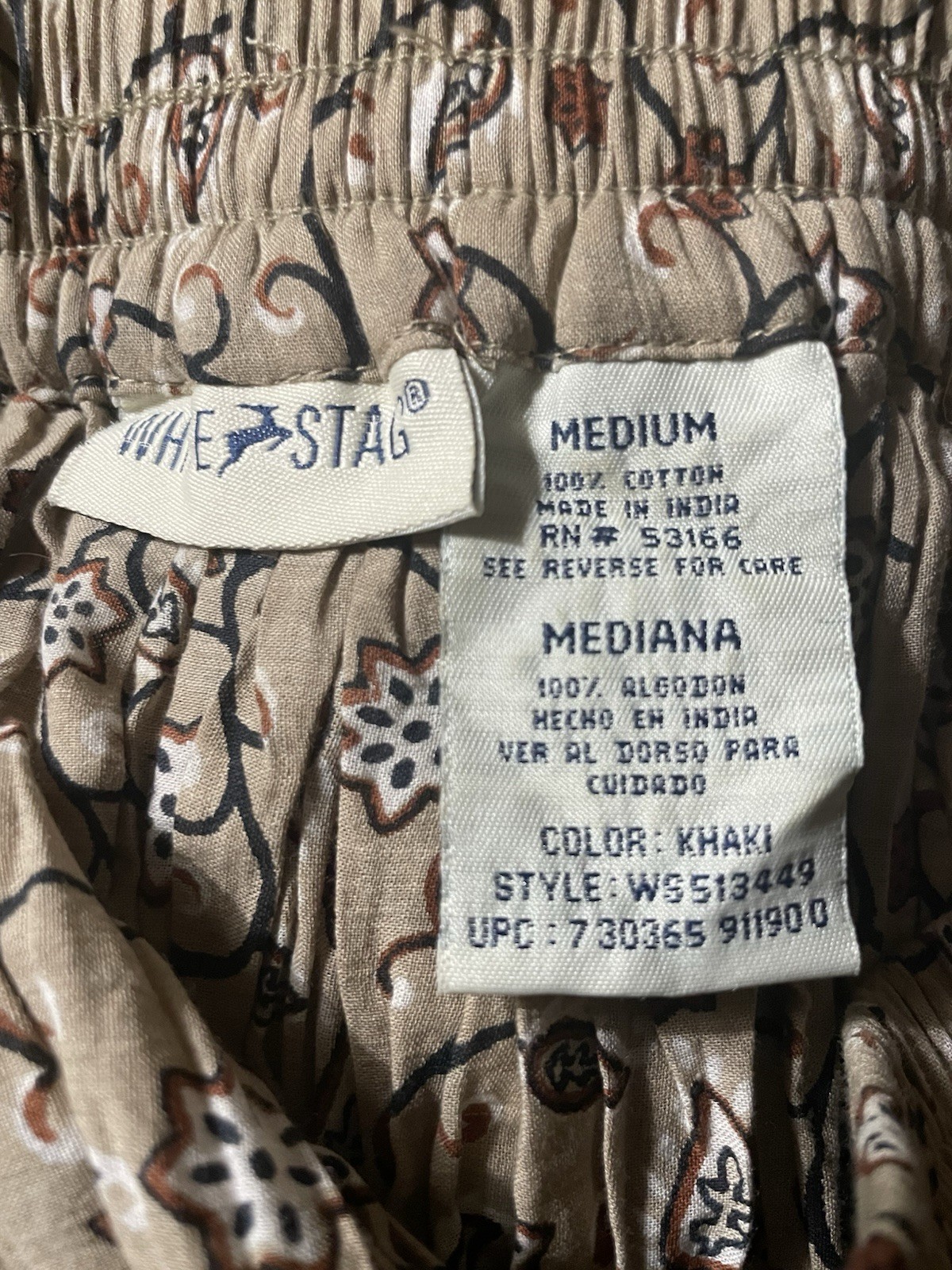 Boho Style Floral Print Elastic Waist Flowy Maxi Gypsy Cotton Skirt Size M