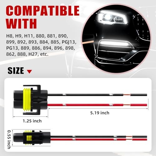 H11 H9 H8 880 881 Female Nylon Pigtail Wiring Harness for Headlight or Fog