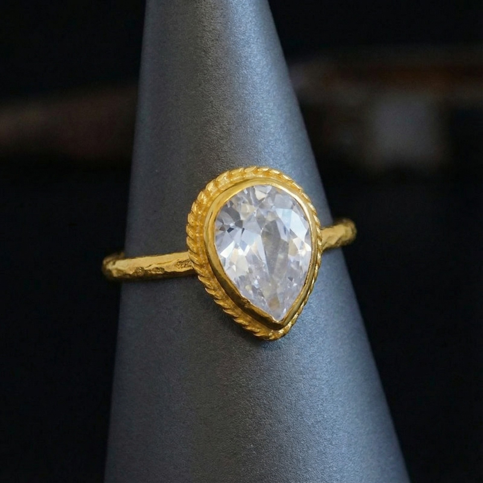 как выглядит US DUTY INCL: Sultan White Topaz Pear Stack Clarity Ring, Unique Gift 12.75 US фото