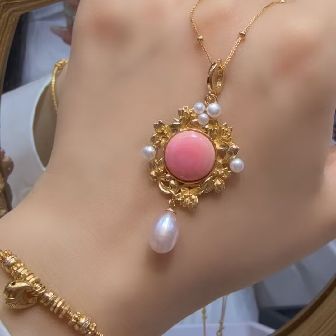 как выглядит gorgeous new design natural pink conch white pearl pendant 925s t фото