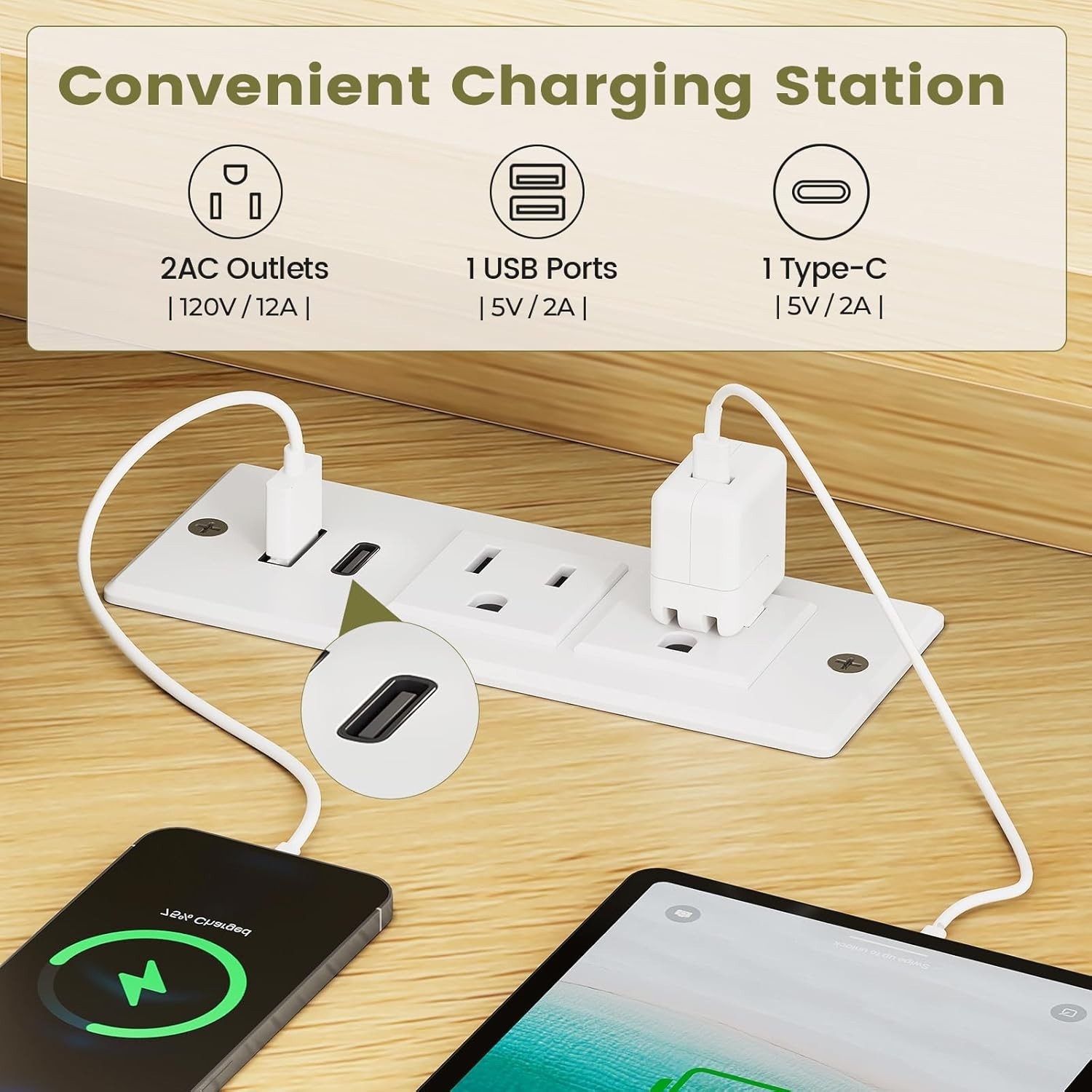 Особенности: 【Large Desktop】, 【Ample Storage Space】, 【Convenient Power Outlet & USB Charging Station】, 【Cool & Smart Led Light Strips 】