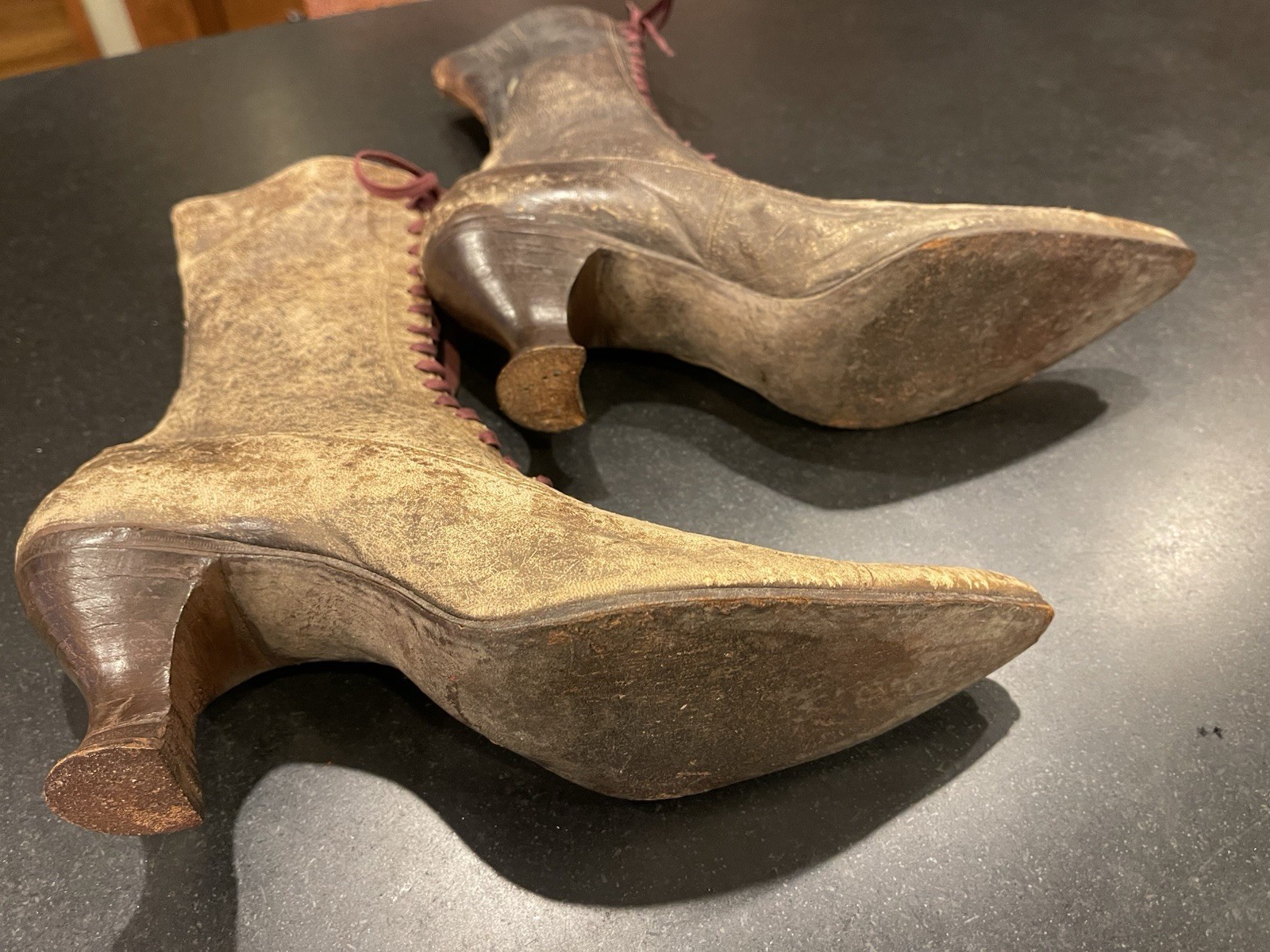 Antique Victorian Tan Brown Leather Lace-Up Boots Late 1800s Collector Piece