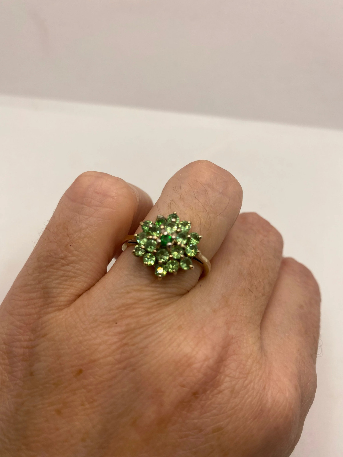 Vintage Handmade Genuine Green Peridot Filigree Setting 925 Sterling Silver Goth