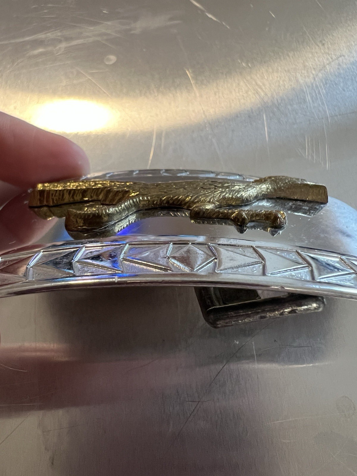 как выглядит Southwestern Silver And Gold Tone / Two-Tone Roadrunner Vintage Belt Buckle фото
