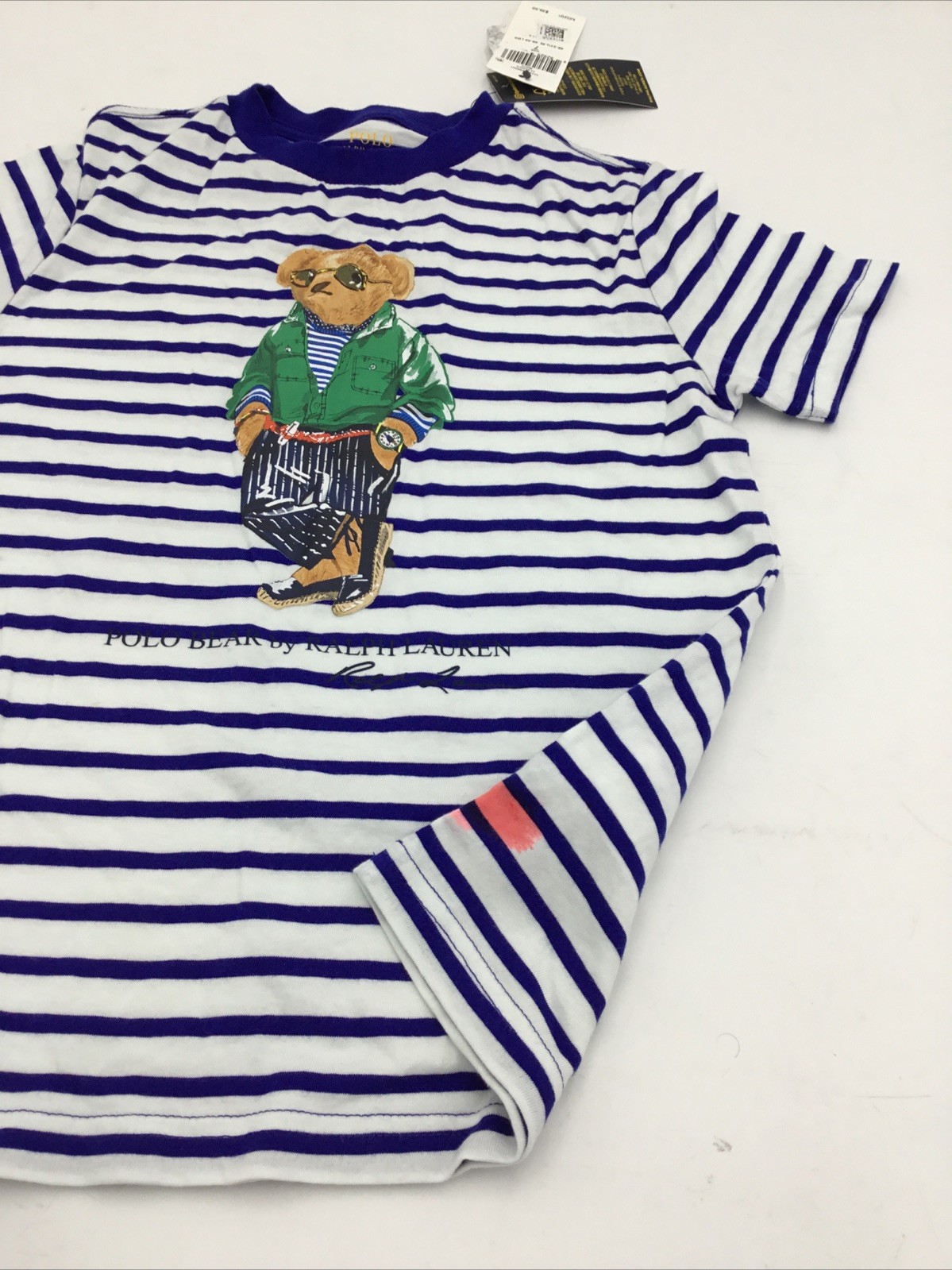 Polo Ralph Lauren Kids Polo Bear Striped Cotton Tee in White Size 7