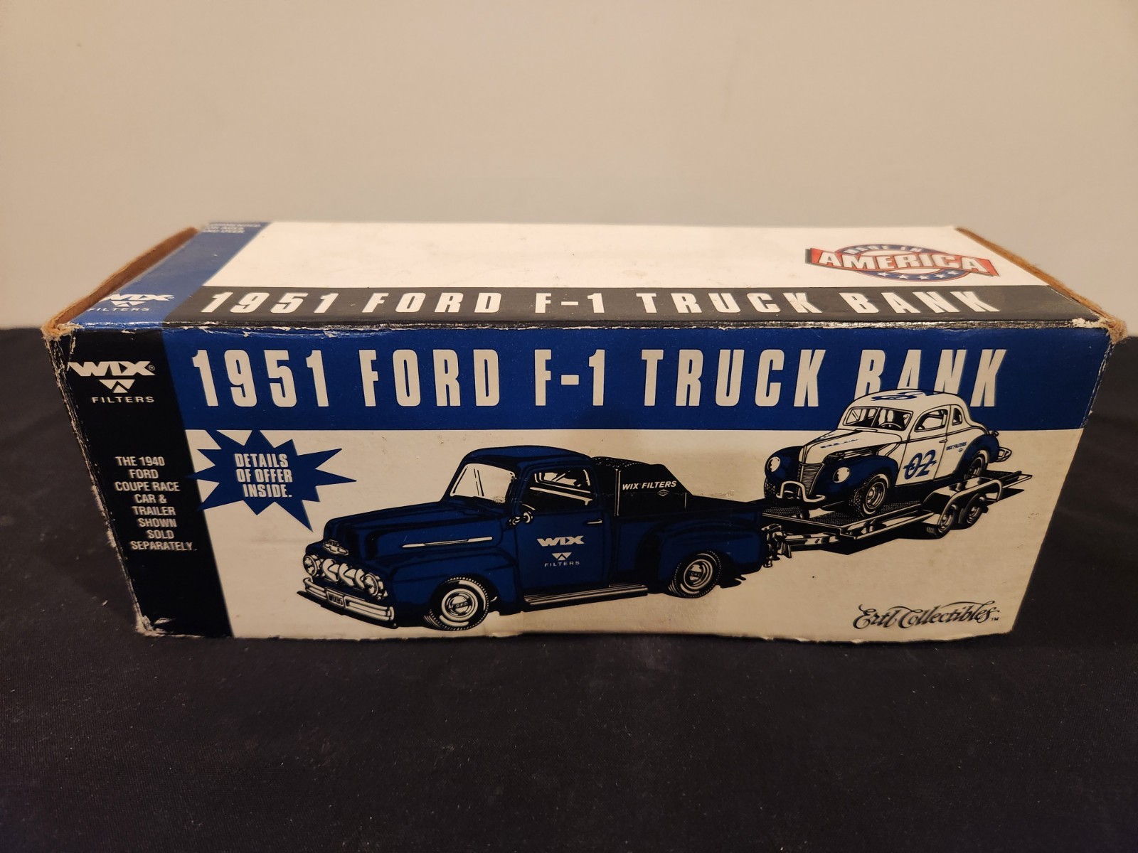 Vintage 1995 Ertl Wix Filters 1951 Ford F-1 Truck Bank, Good Cond. w/box