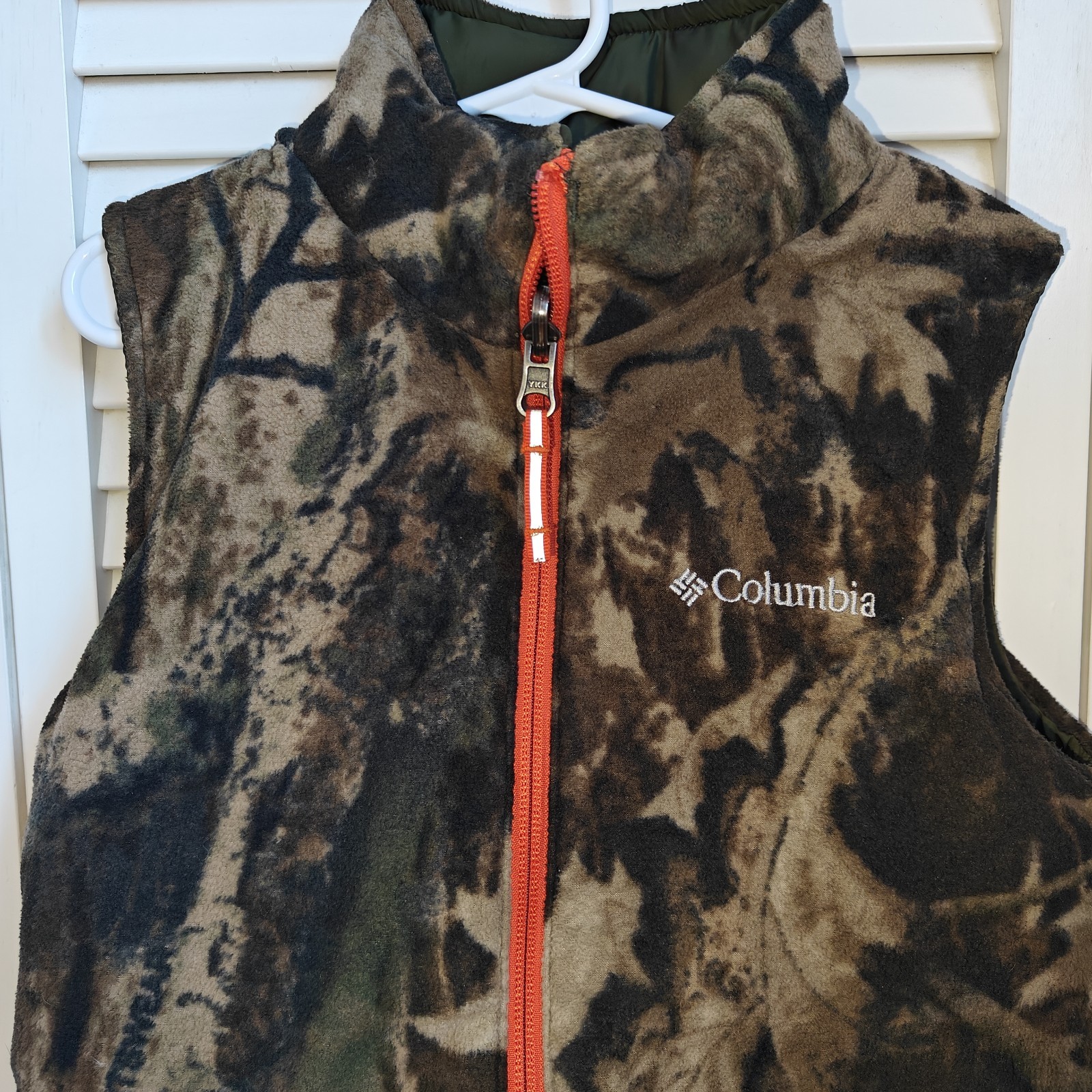 как выглядит Columbia Youth Reversible Fleece camouflage Green Vest Size S 8 фото