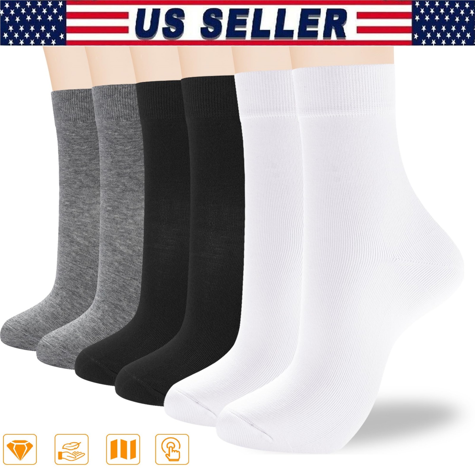 Pack of: 6 Pairs (2 Black + 2 Gray + 2 White)