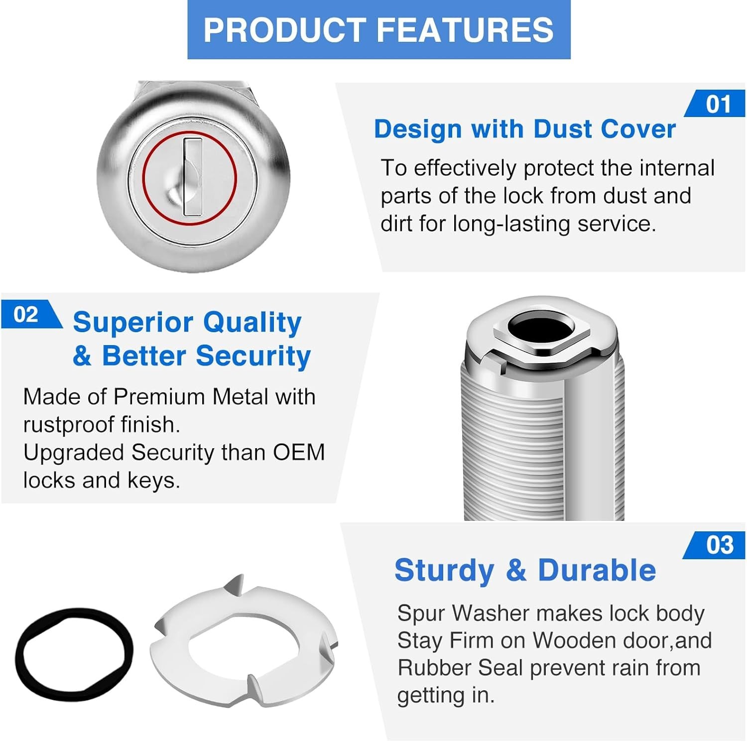 Recommended Uses For Product: RV storage locks, tool box locks, cabinets, thick wooden drawers,