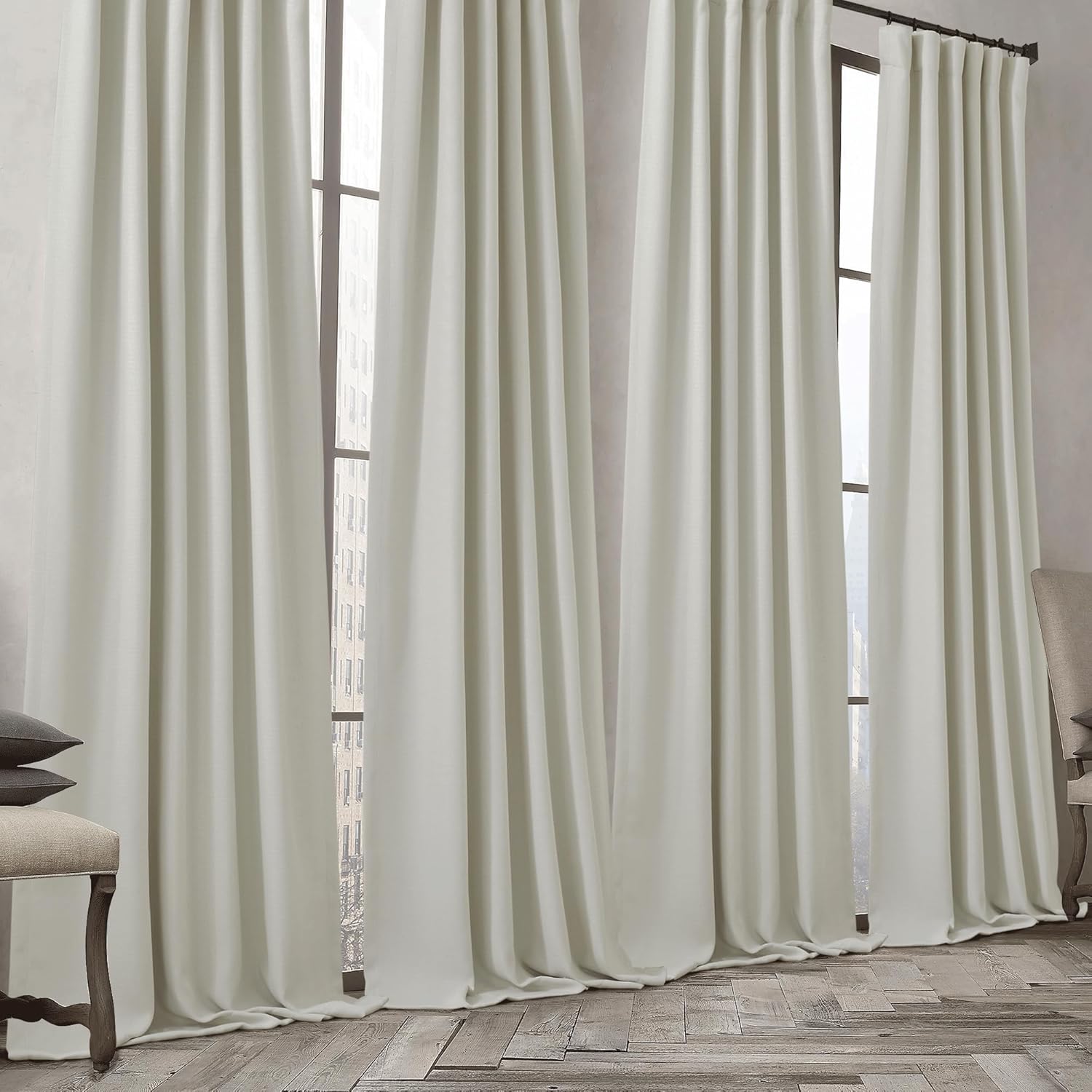 Faux Linen Room Darkening Curtains 2Panels Thermal Insulated Back Tab Rod Pocket