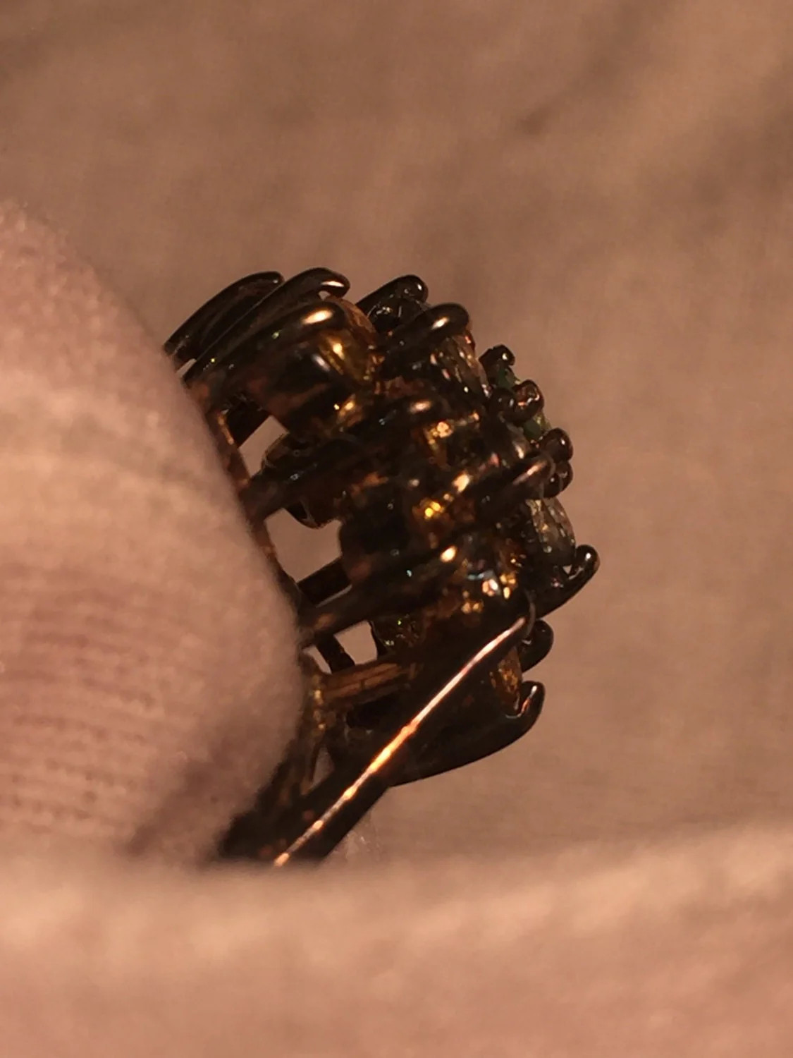 Vintage Handmade Genuine Green Peridot Filigree Setting 925 Sterling Silver Goth