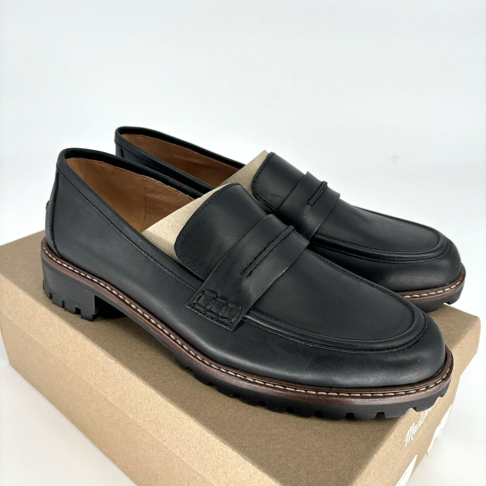 NIB Madewell The Corinne Lugsole Loafer Stacked Heel Round Toe True Black Size 7