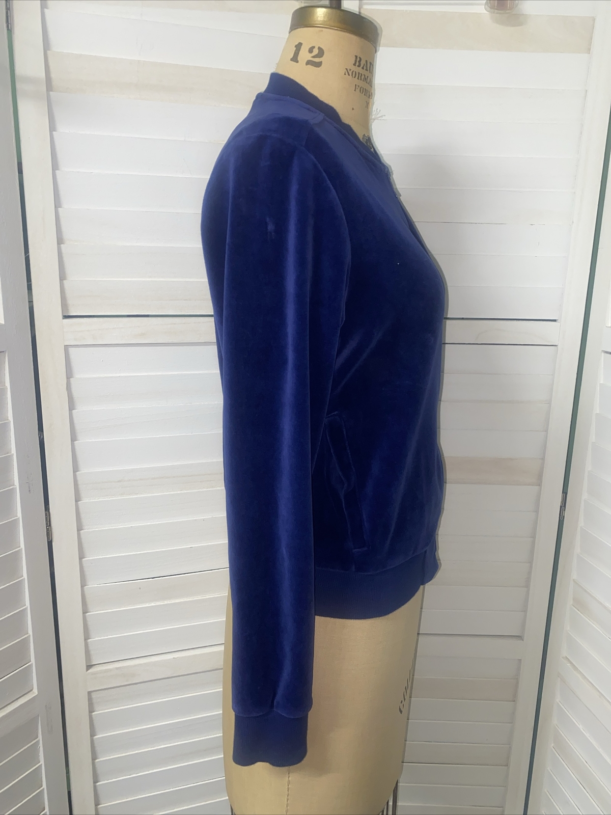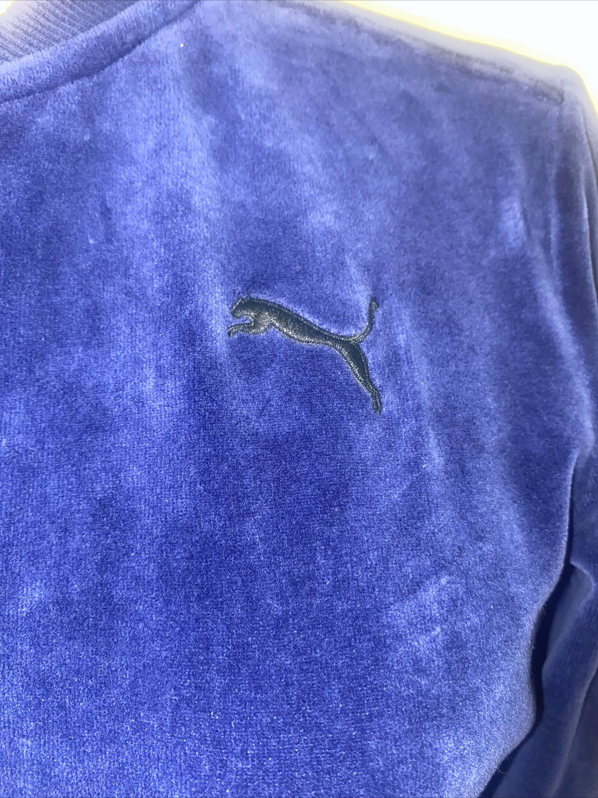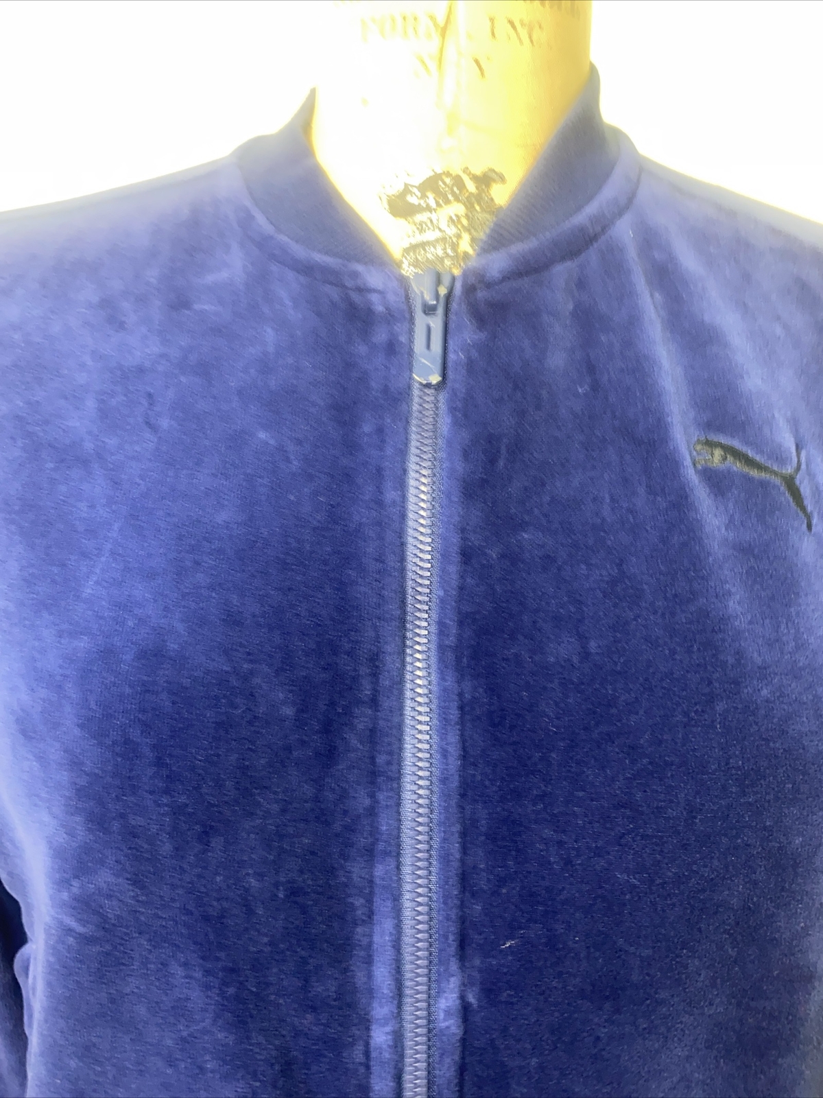 PUMA Women s Velour Zip Up Track Top High Neck Blue Plush Tracksuit Jacket Med