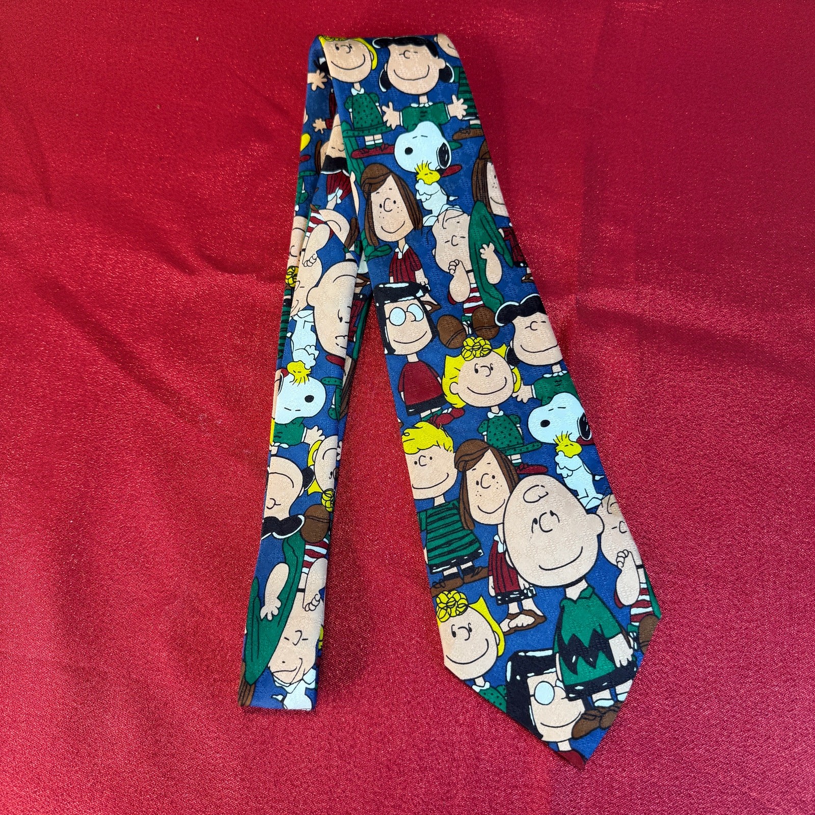 Vintage Peanuts Charlie Brown Gang Neck Tie Snoopy Made in USA Retro