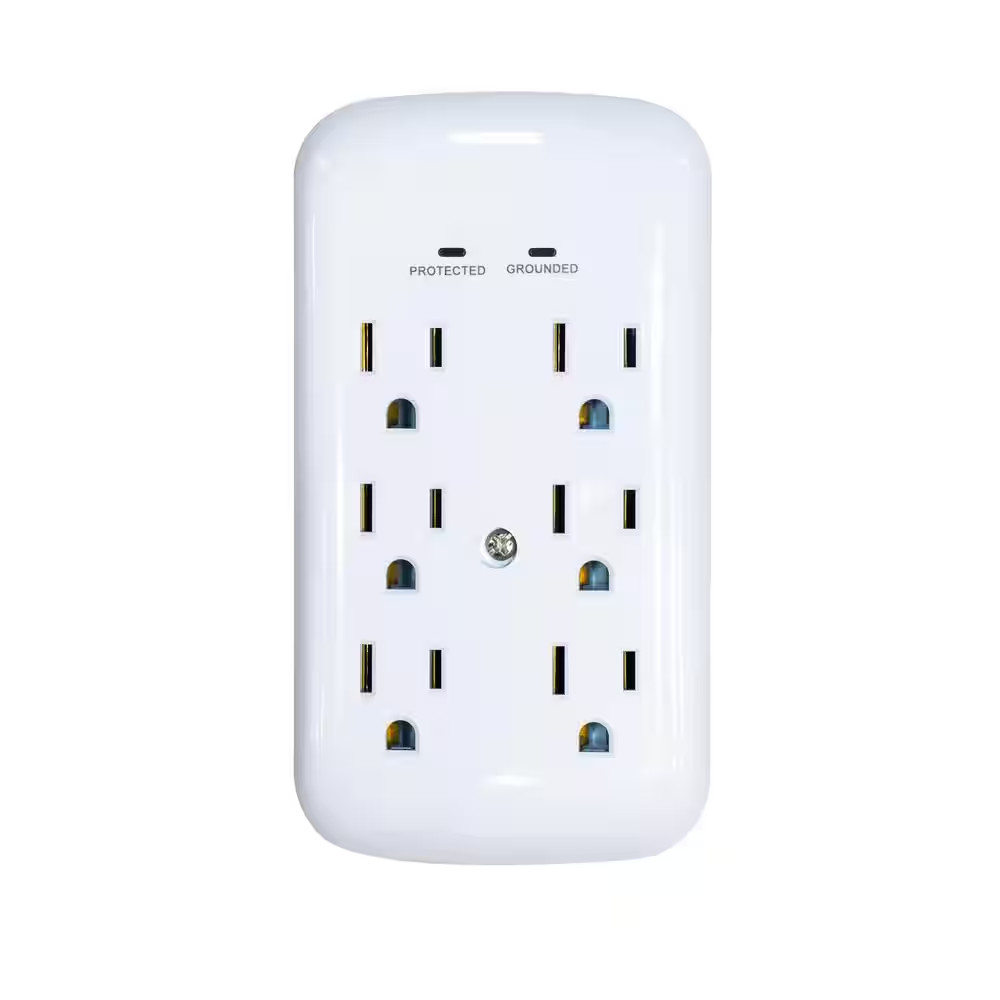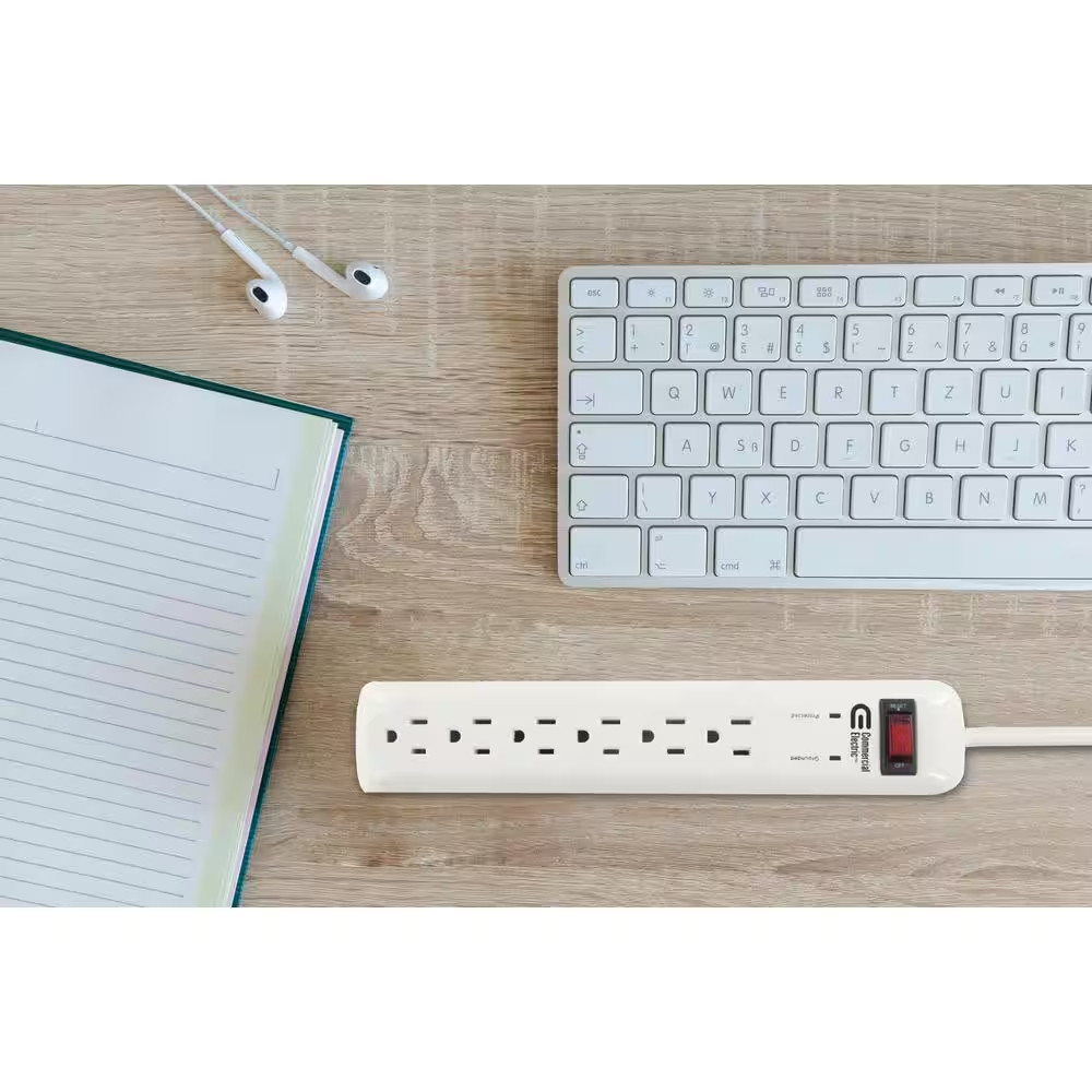 8 Ft. 6 Outlet Surge Protector with 45 Degree Flat Angle Plug in White