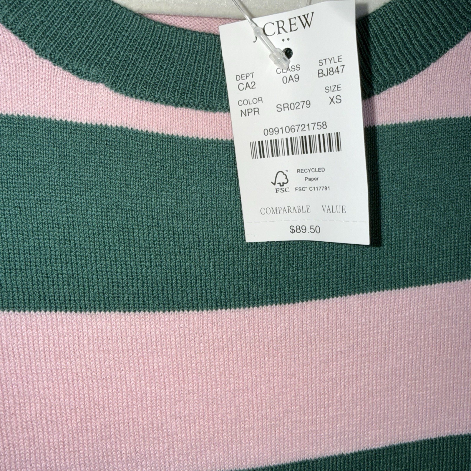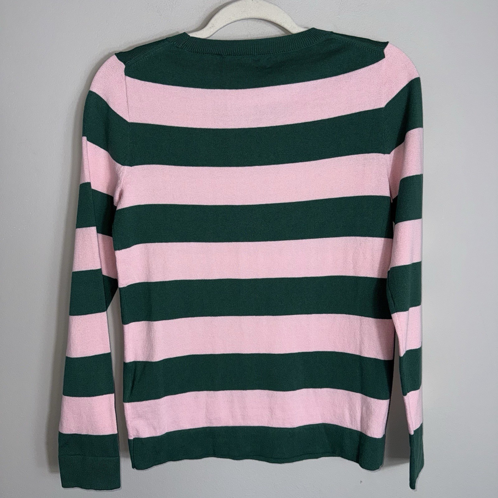 как выглядит J Crew 100 Cotton Teddie Sweater-Long Sleeve-Pink Green Stripes-XS-NWT фото