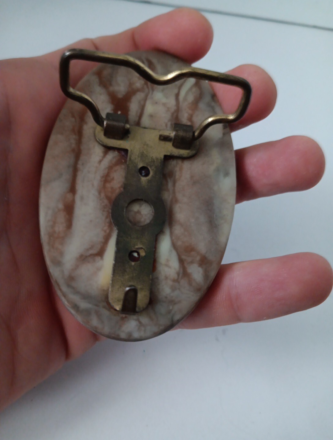 как выглядит Mothers Fathers Italian Association Belt Buckle, Vintage, Faux Marble, Brass фото