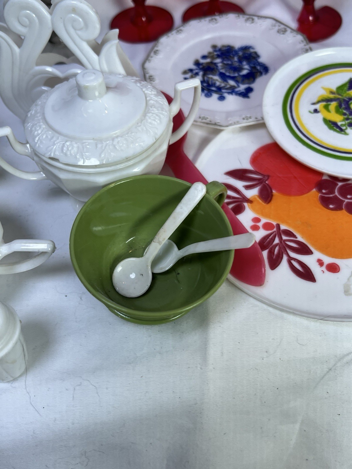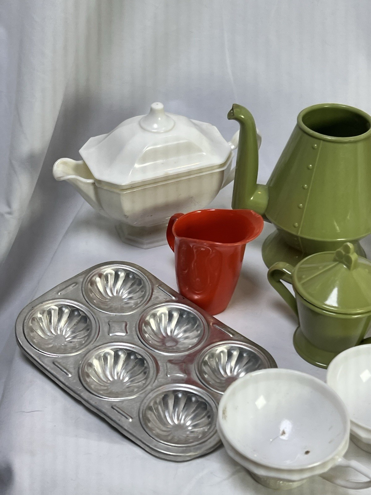 Vintage Kids Child's Play Kitchen Plastic Dishes Cups Teapot Bundt pan 27 Pieces