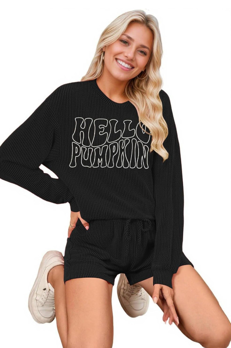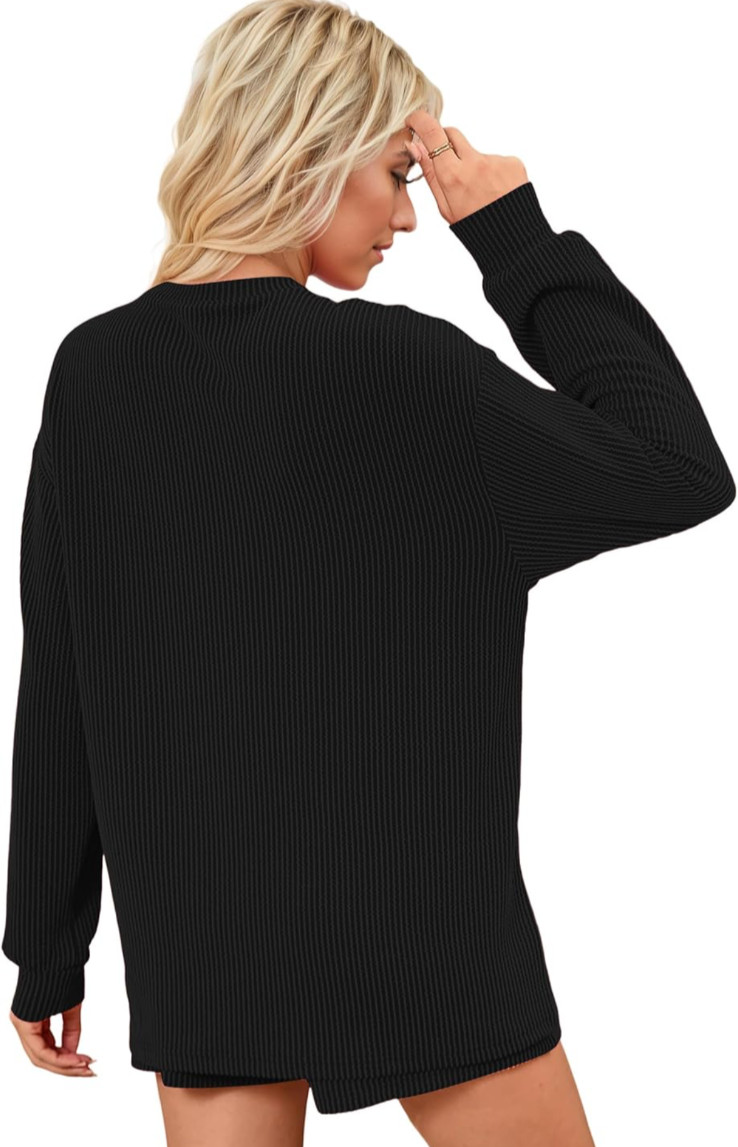 как выглядит Womens Ribbed Pajama Sets Long Sleeve Top and Shorts Matching Lounge Set фото