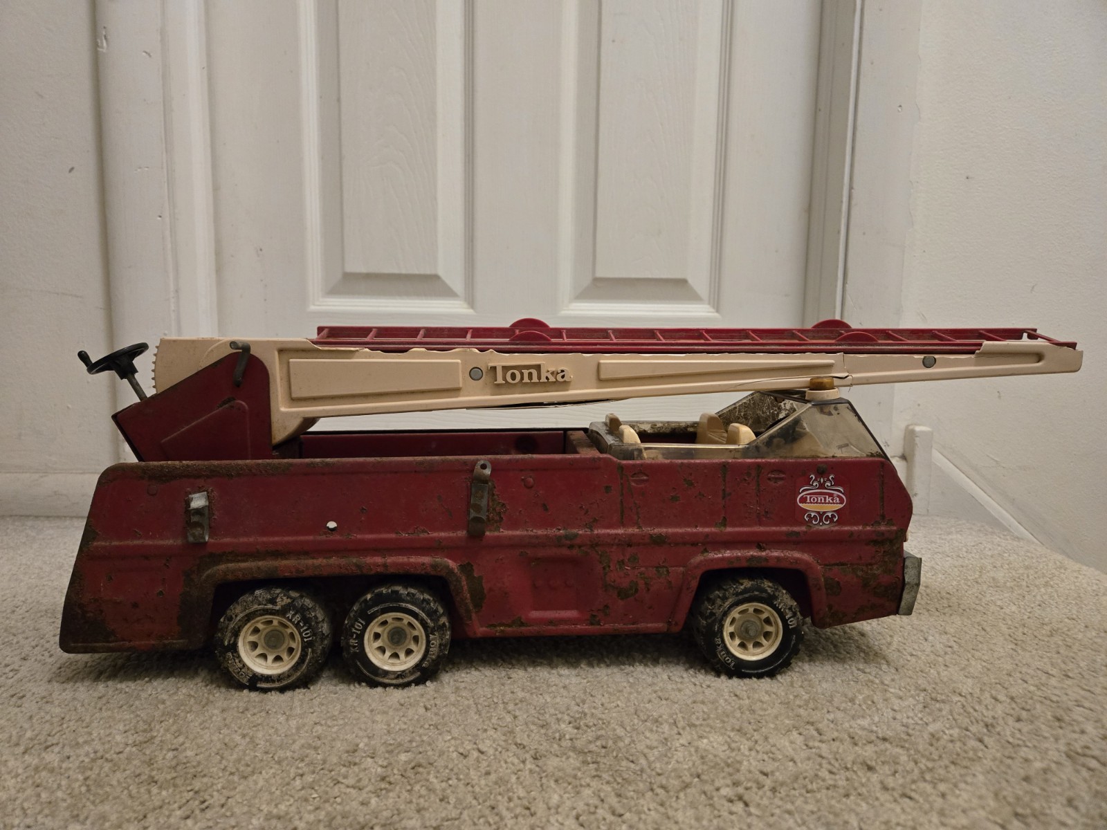 TONKA AERIAL LADDER FIRE ENGINE SWIVLE LADDER PRESSED STEEL TOY TRUCK 60'-70's