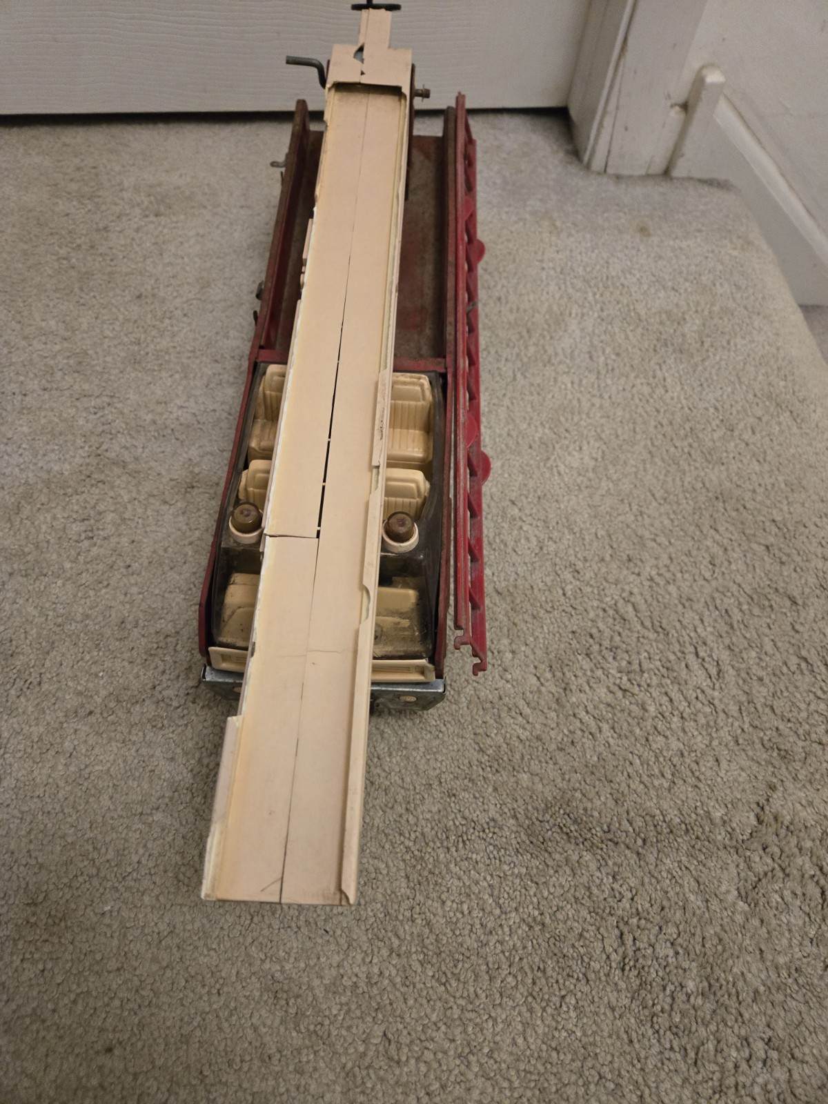 как выглядит TONKA AERIAL LADDER FIRE ENGINE SWIVLE LADDER PRESSED STEEL TOY TRUCK 60-70s фото