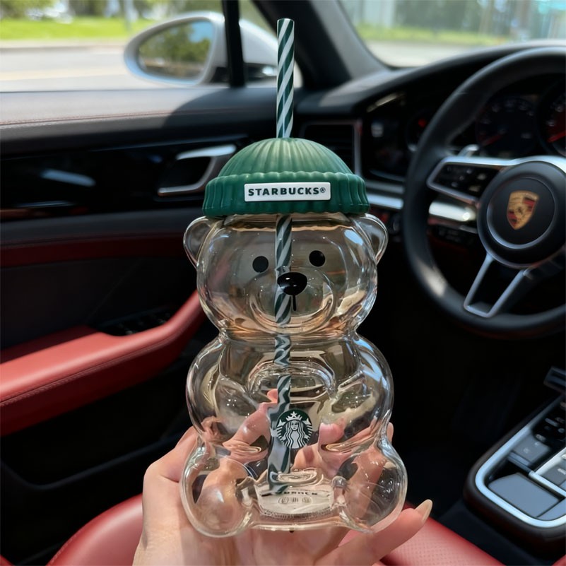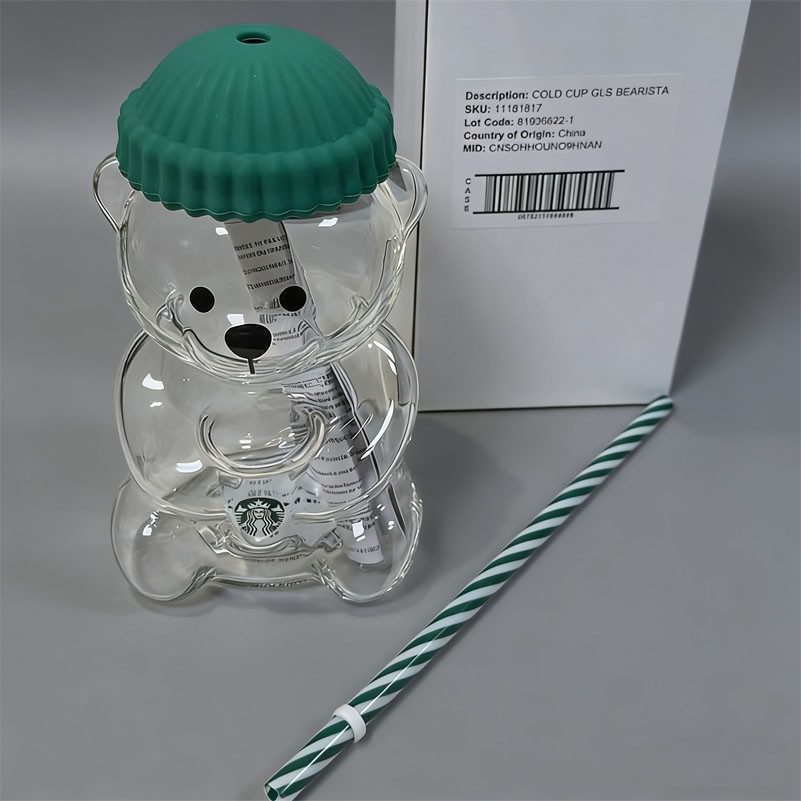 • Orignal Starbucks Bearista Limited Edition Green Hat Bear Glass Cold Straw Cup