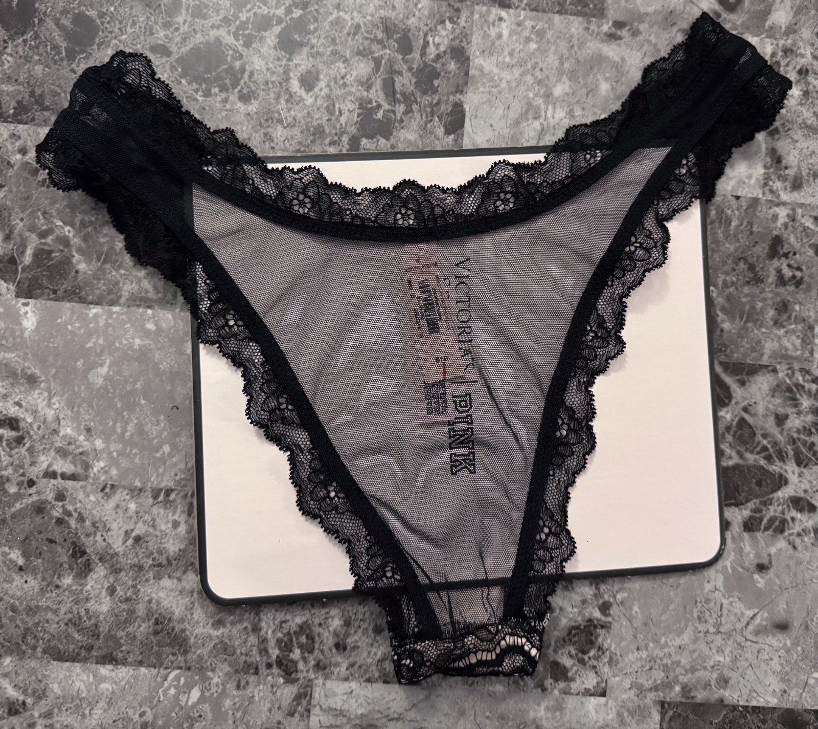 NWT VICTORIA'S SECRET DREAM ANGELS S BLACK LACE MESH BRAZILIAN CHEEKY PANTIES