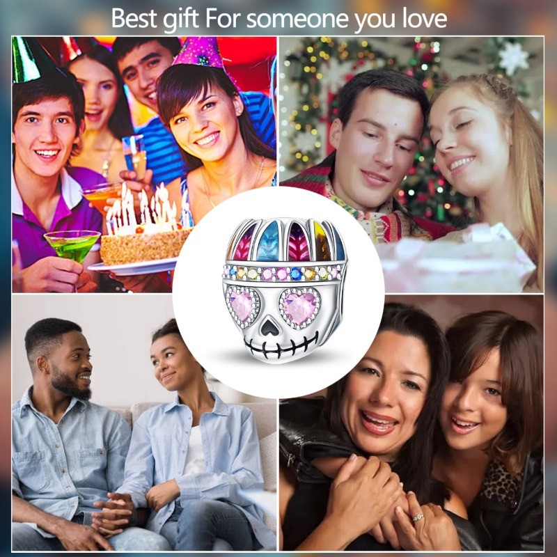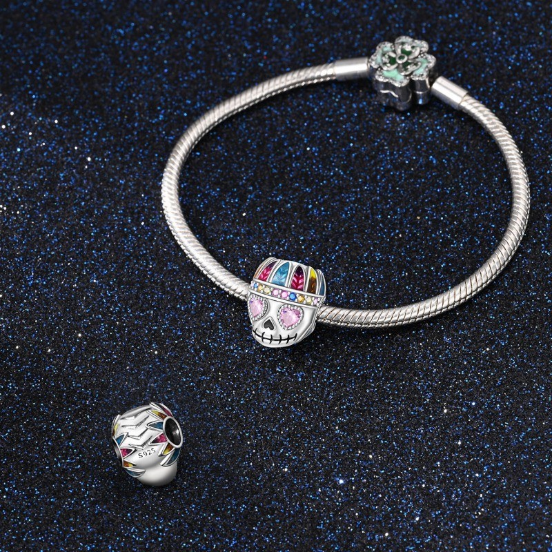 PANDACH 925 Sterling Silver Tribal Skull Bead Charm, Bohemian Gothic Jewelry DIY