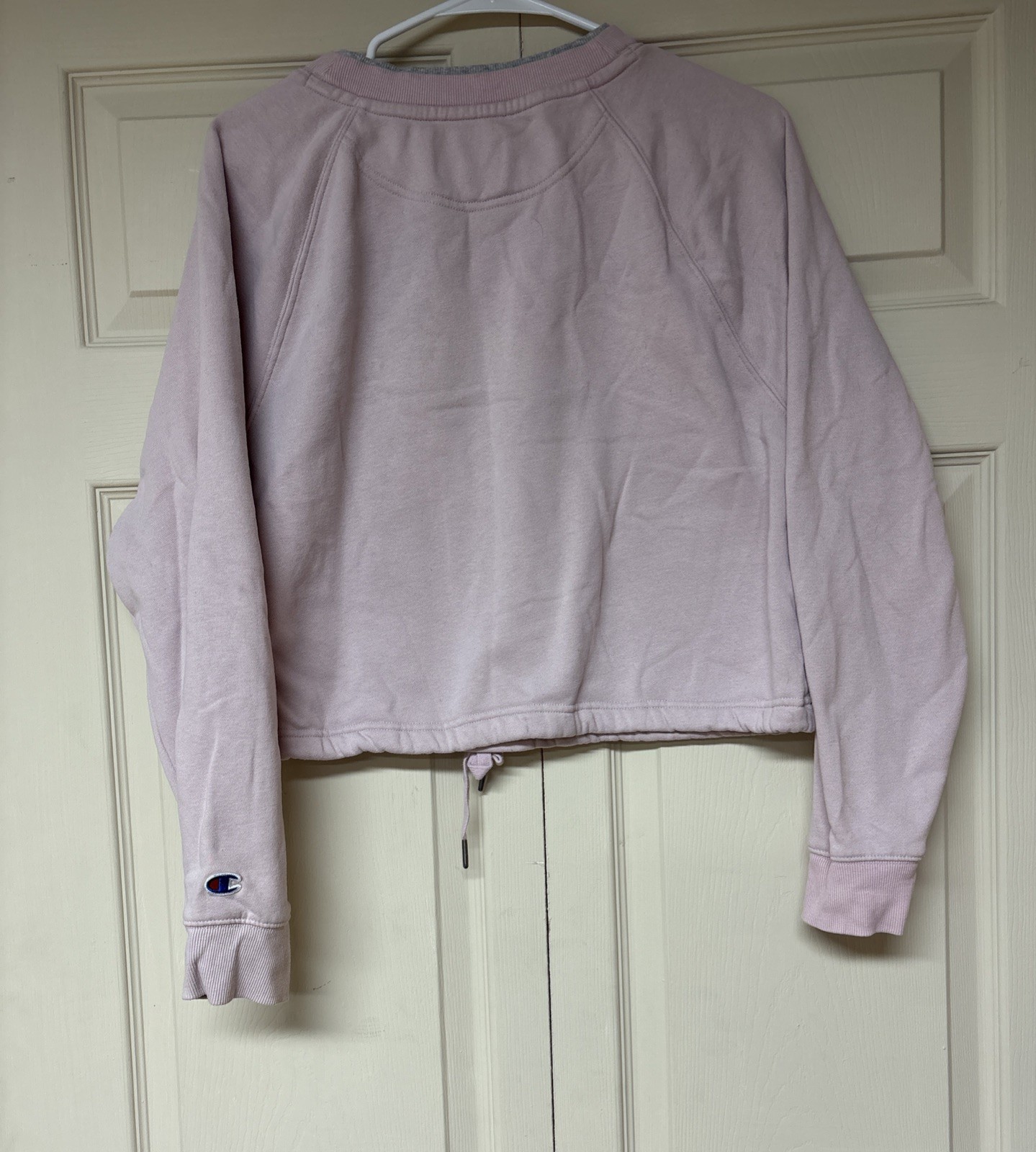 как выглядит Champion Womens Cropped Pink Crewneck Long Sleeve Sweatshirt Size Medium фото