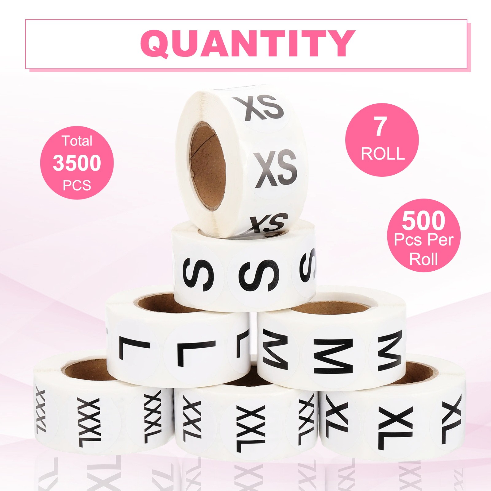 3500 Pcs Clothing Labels, 7 Sizes XS-XXXL Size Tag Garment Labels, White