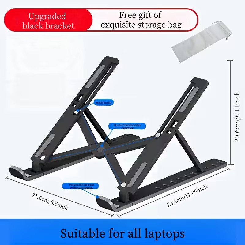 Portable Foldable Laptop Stand 10 Height Adjustable ABS Holder with Storage Bag