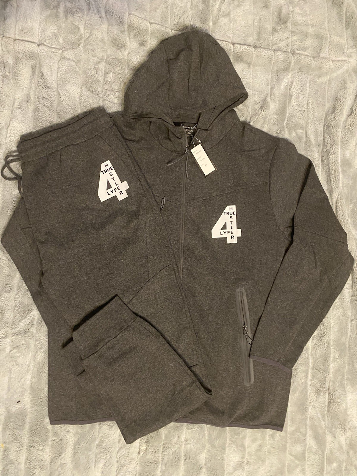 Mens TH4L Gray 2 Piece Tech Sweatsuit Hoodie Jogger Pants 2x