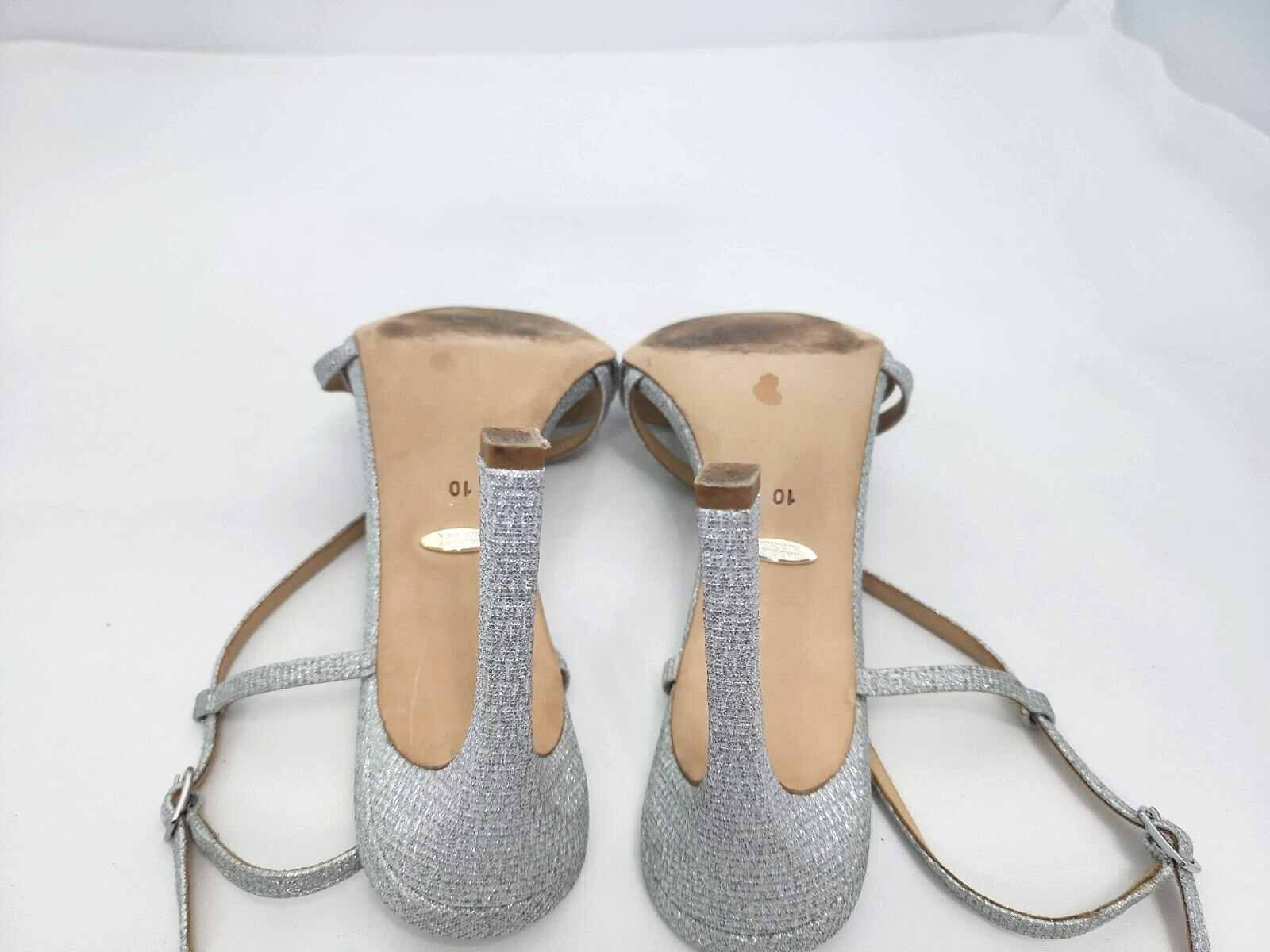 Badgley Mischka 10 Cook Metallic Silver Glitter Strappy Evening Shoes/Heels