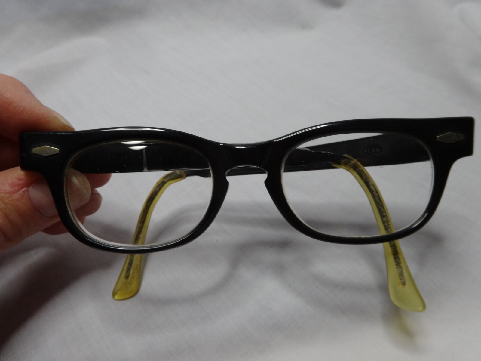 Vtg 1950s Aluminum HORN RIMMED Matching Eyelasses Sunglasses Glass Lenses USA