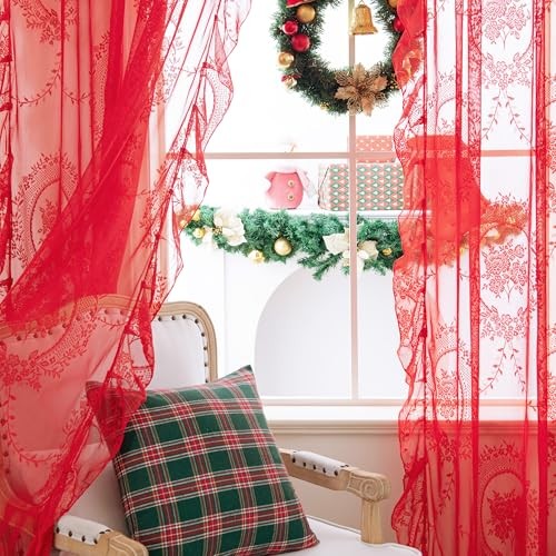 Lace Curtains 95 inches Long - 2 Panels Rose 52W x 95L Pack of 2 Red