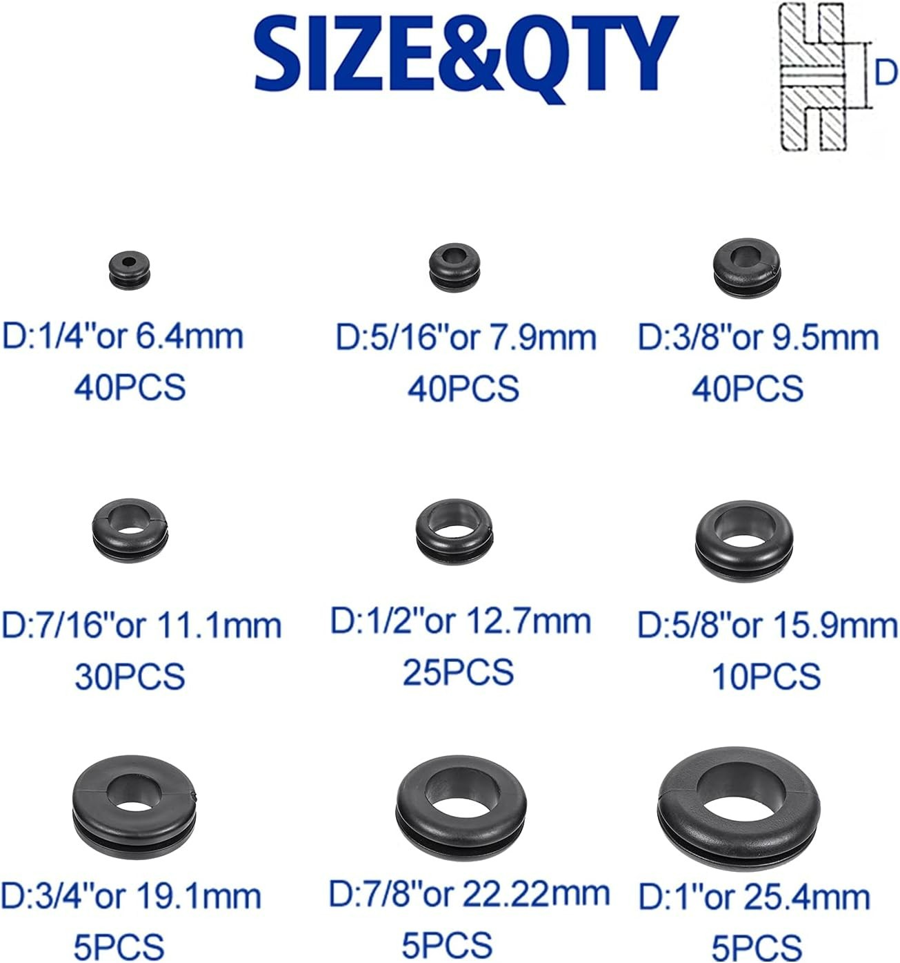 • 200 PCS Hollow Rubber Grommet Firewall Hole Plug Assortment, Rubber Grommet k...