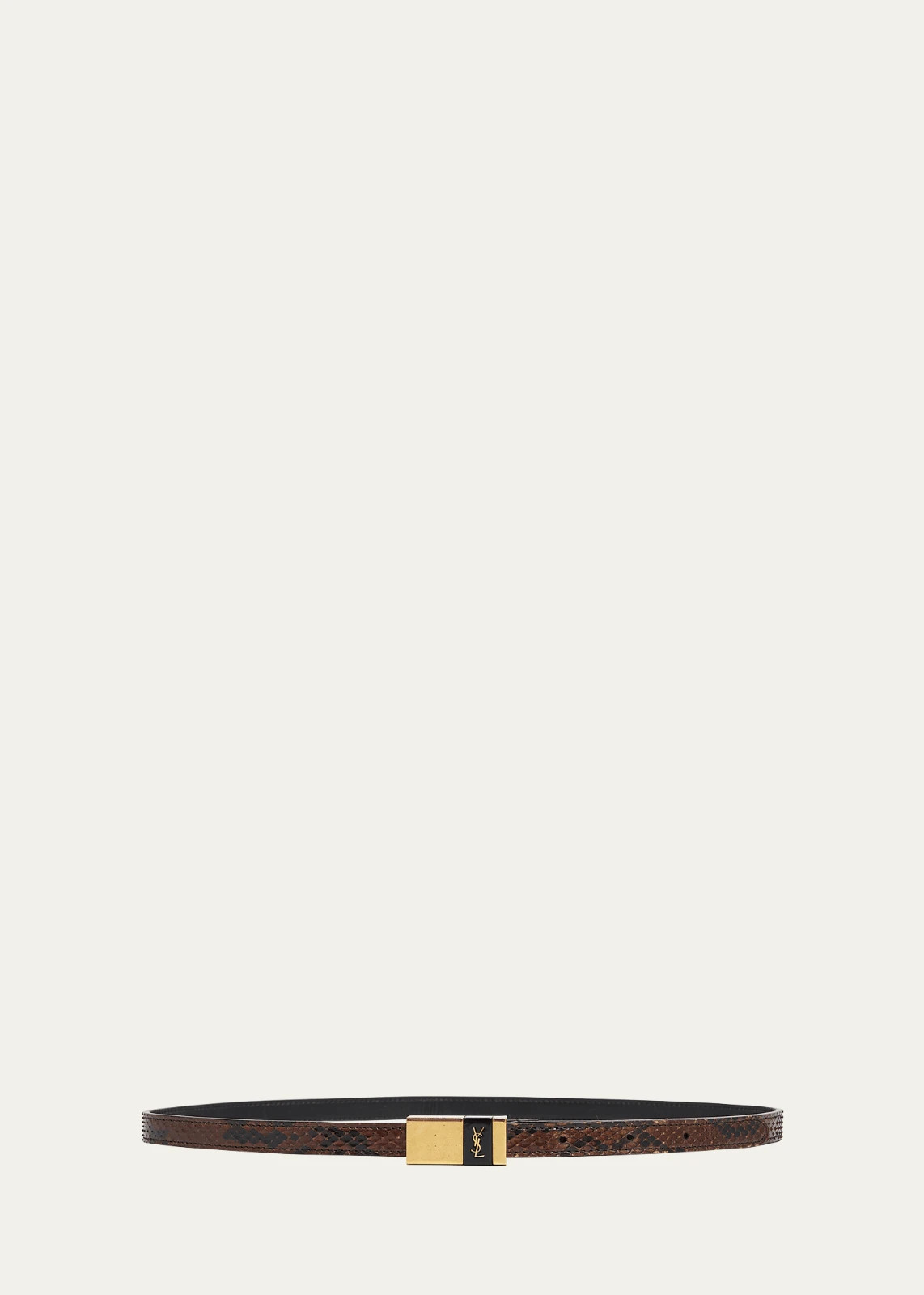 как выглядит NWT YSL Saint Laurent Python Buckled Skinny Logo Leather Belt 95 CM Black Lava фото