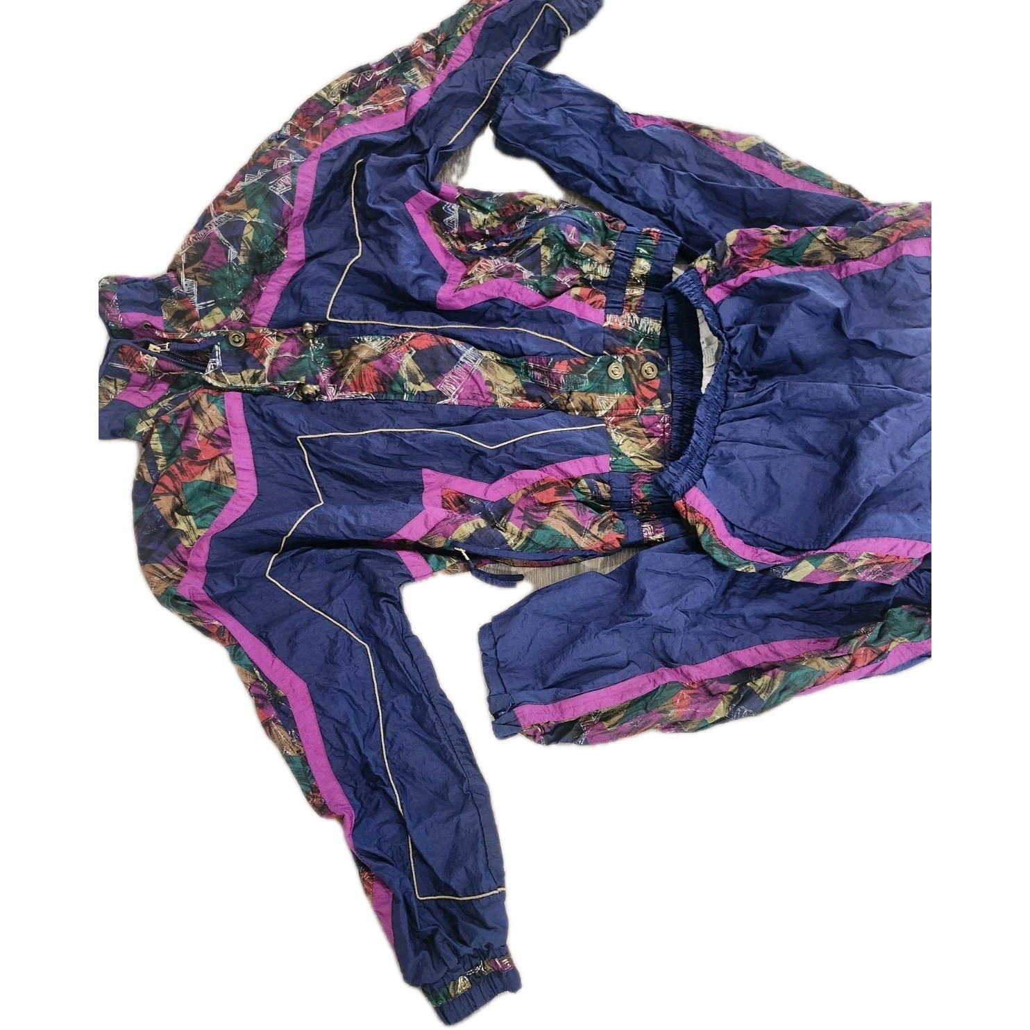 Vintage 2pc Large East West Track Jacket Pants Windbreaker Blue Purple 90s