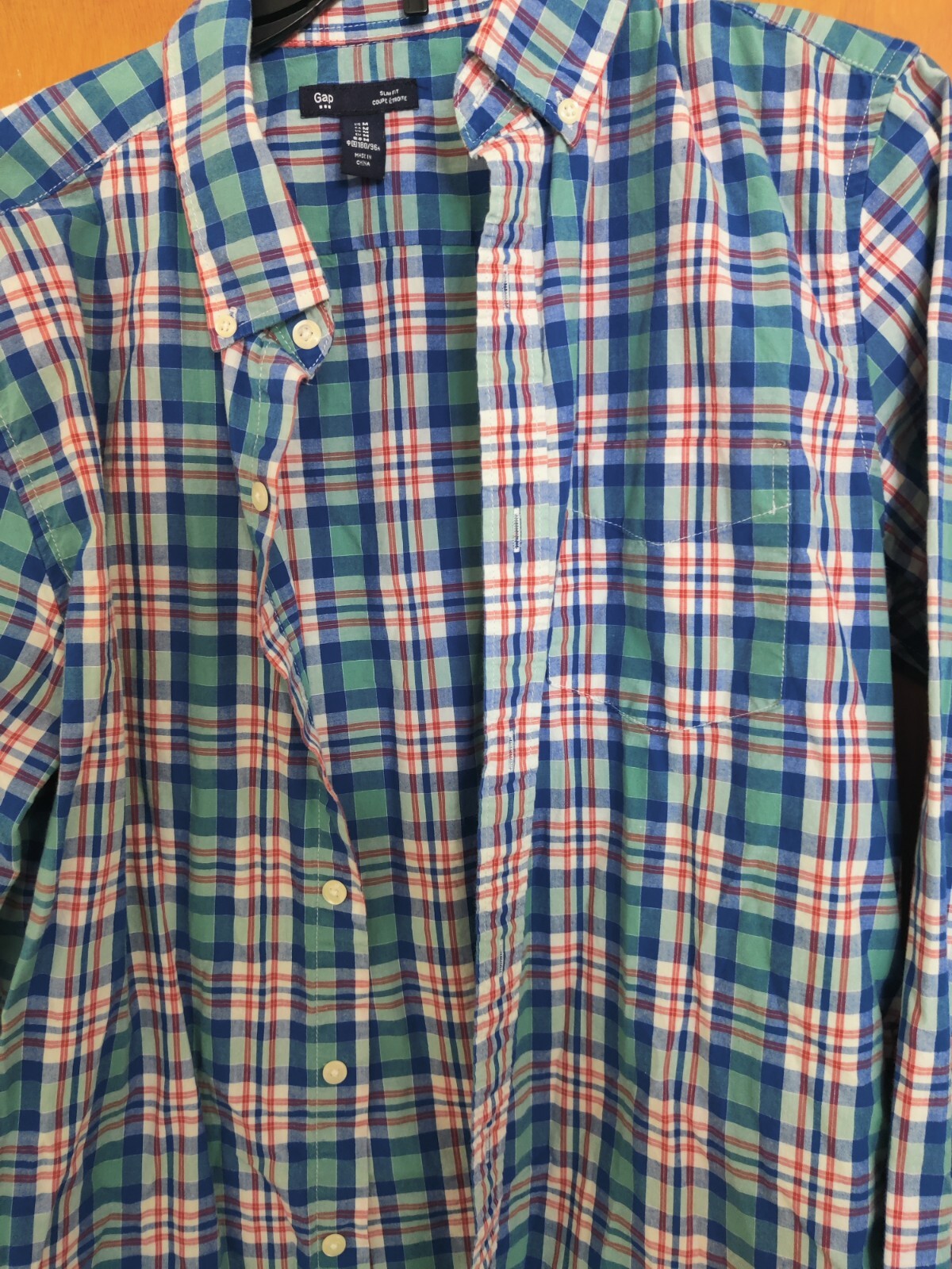 как выглядит Gap Slim Fit Dress Shirt Medium Blue Red Mint Plaid фото