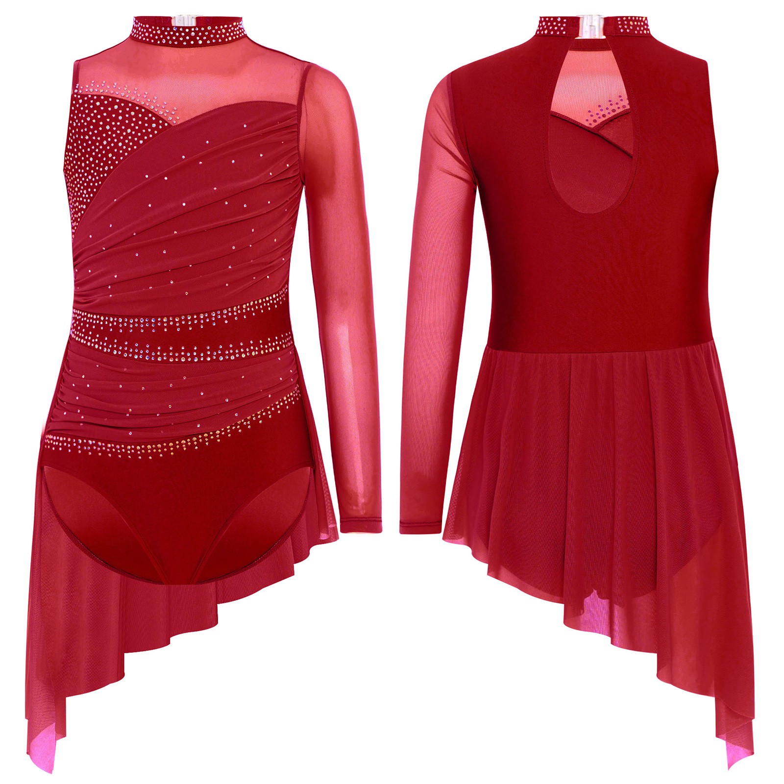 Kids Girls Lyrical Dance Dress Ballet Skirted Leotard Shiny Modern Contemporary