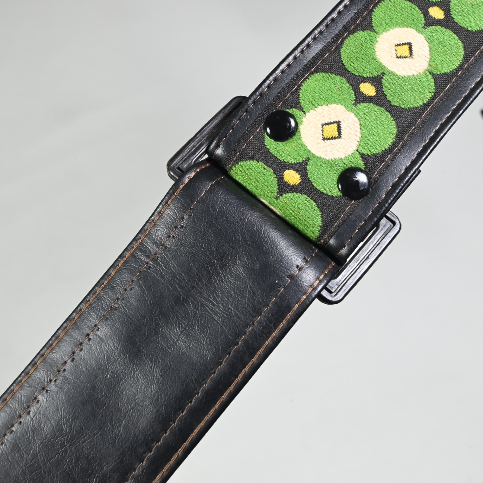 Vintage Hippie Embroidered Jacquard Guitar Strap, 1970s Japan - Leather Ends
