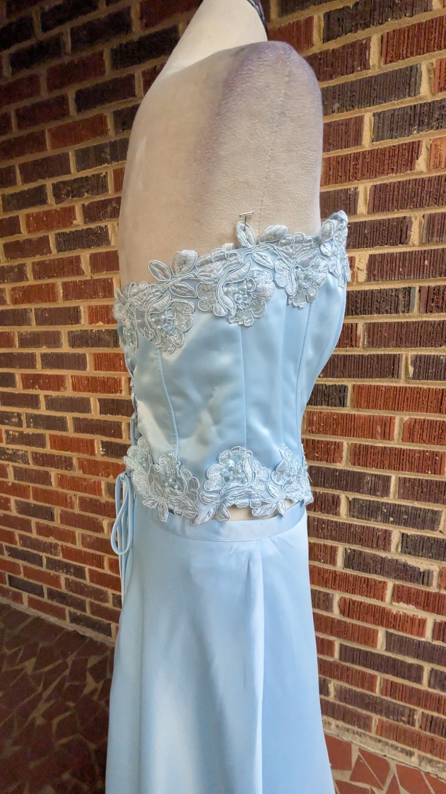 как выглядит VTG Y2K Eureka USA Satin Corset Skirt 2-Piece Formal Gown-Ice Blue- Sz L фото