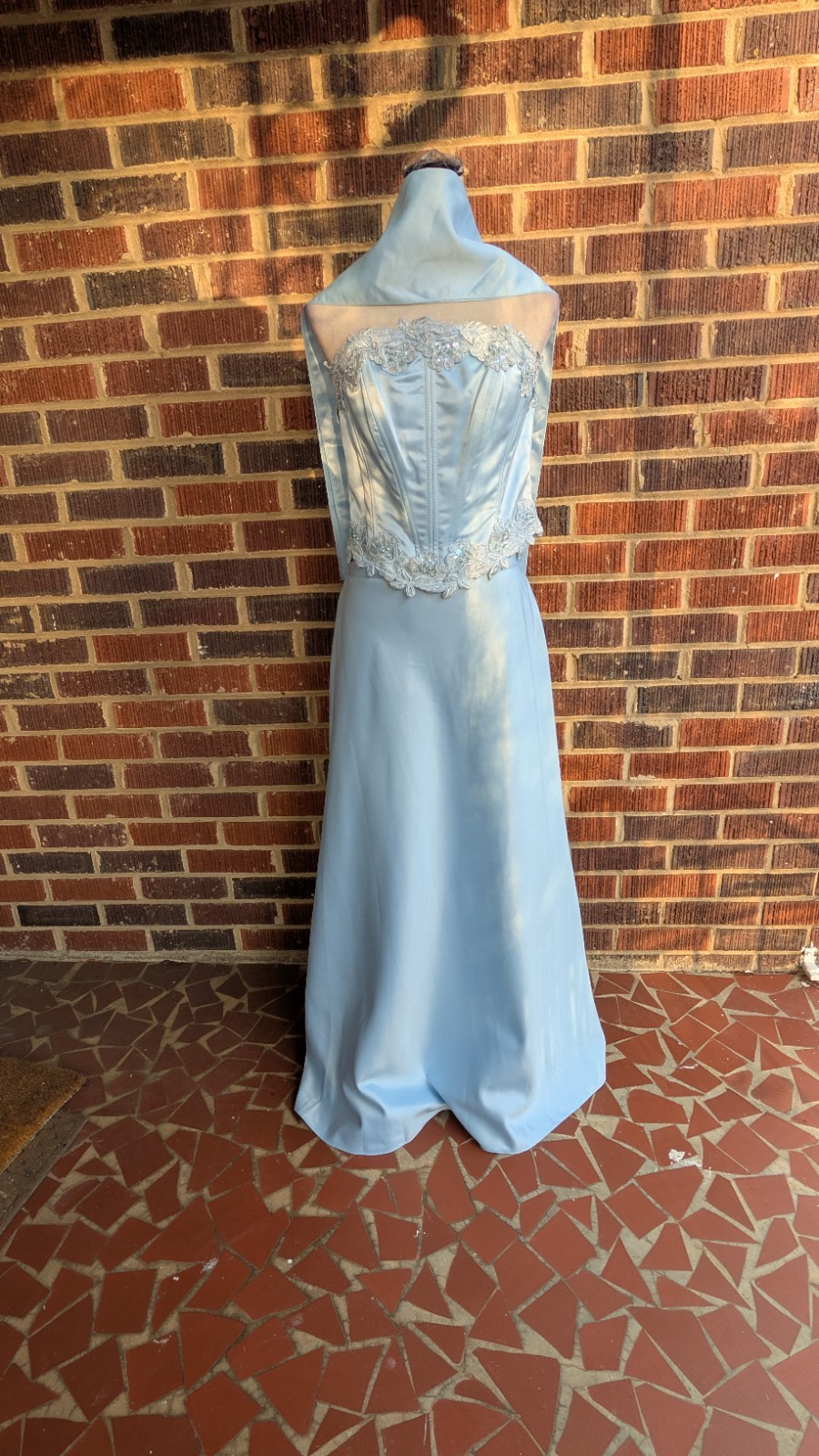 VTG Y2K Eureka USA Satin Corset Skirt 2-Piece Formal Gown-Ice Blue- Sz L