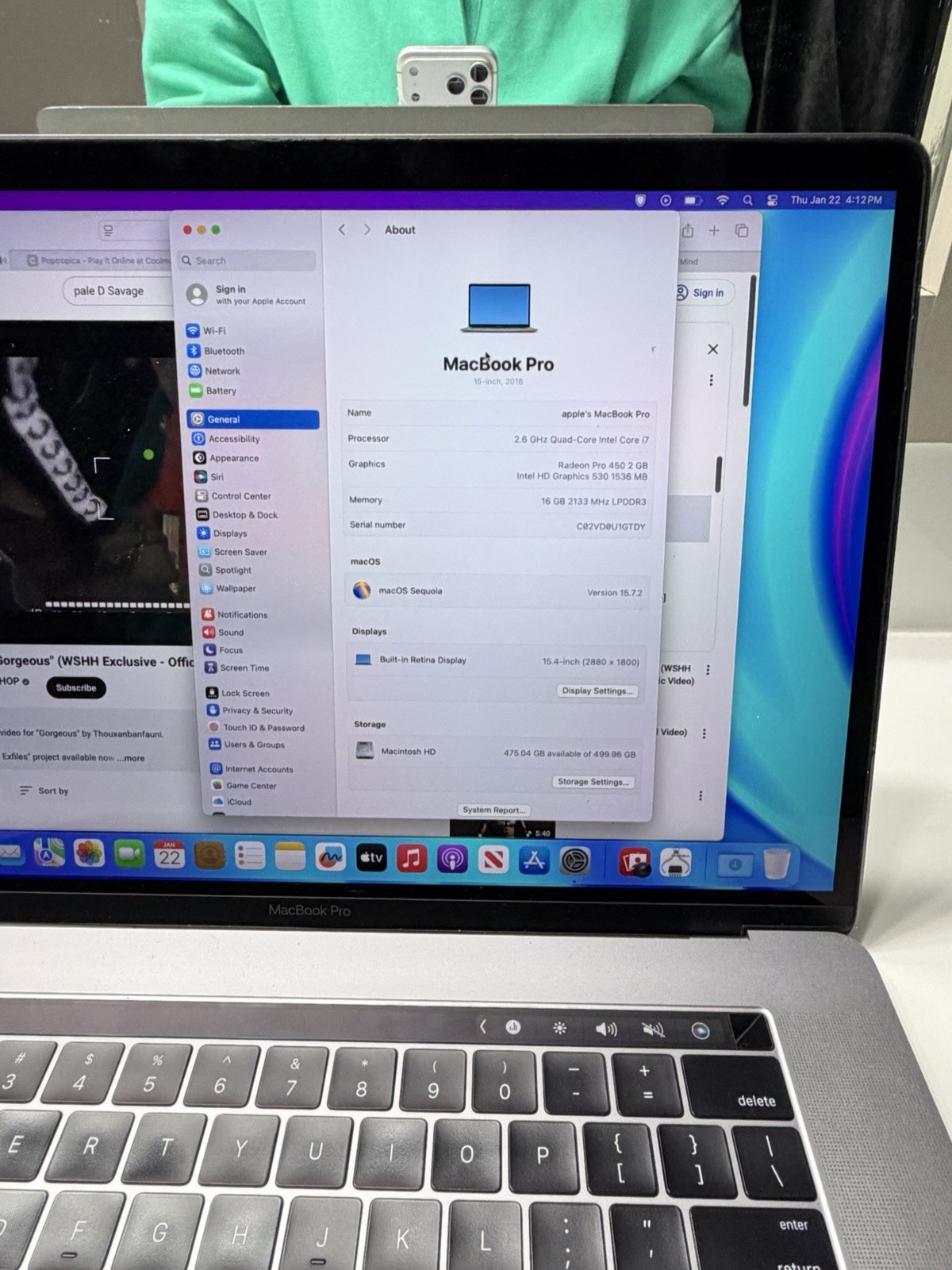 Apple MacBook Pro 15 i7 2.6GHz/16GB/500GB Space Gray 16GB Memory TouchBar